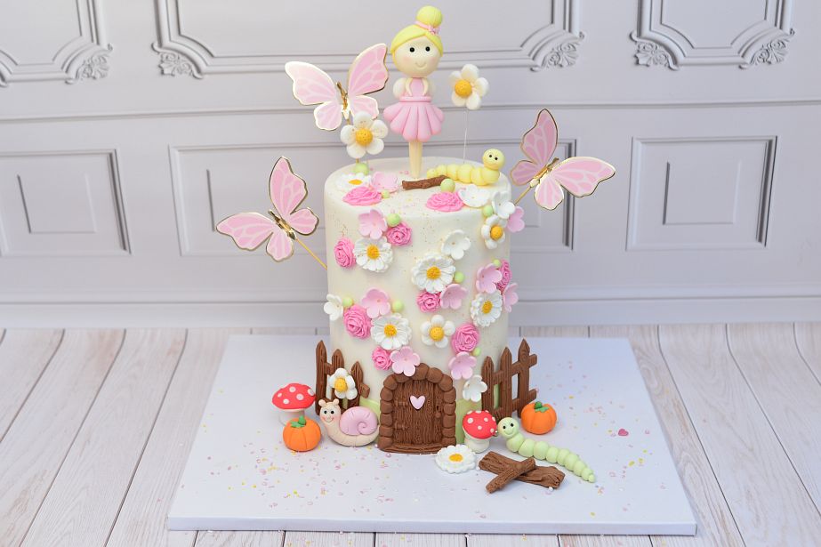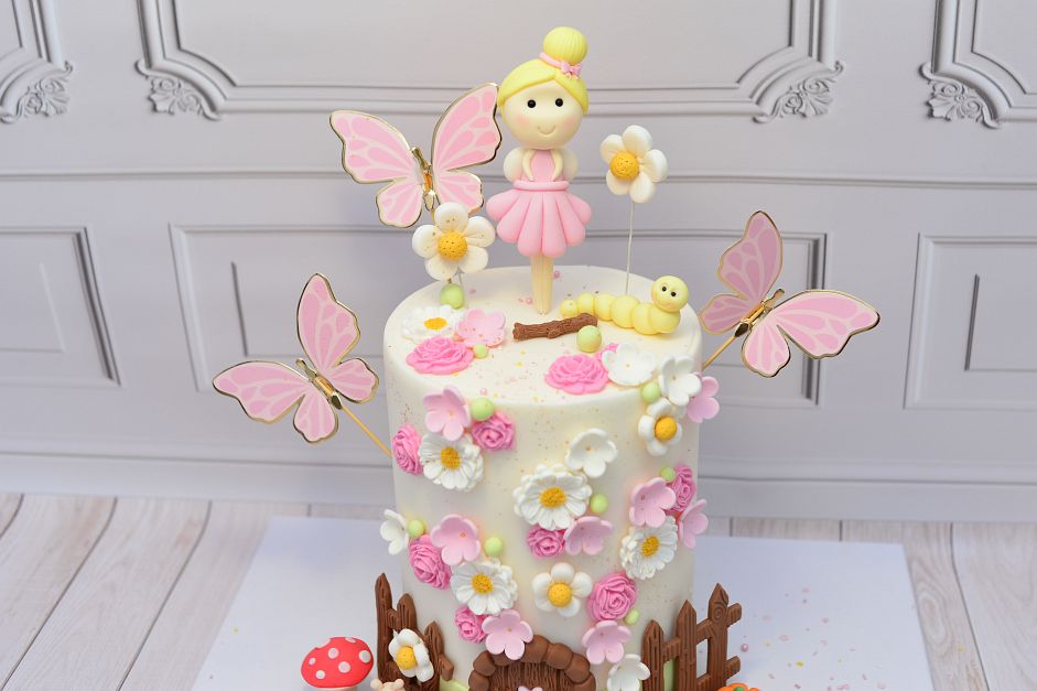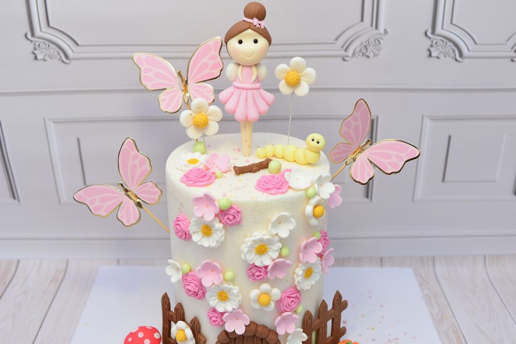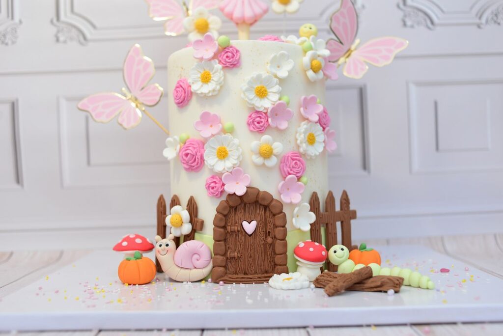 Całość to idealne połączenie słodyczy, natury i bajkowej fantazji. Dzięki dostępnym dekoracjom w sklepie możesz samodzielnie odtworzyć ten magiczny ogród i sprawić, że Twój tort zachwyci wszystkich gości. 🌸✨