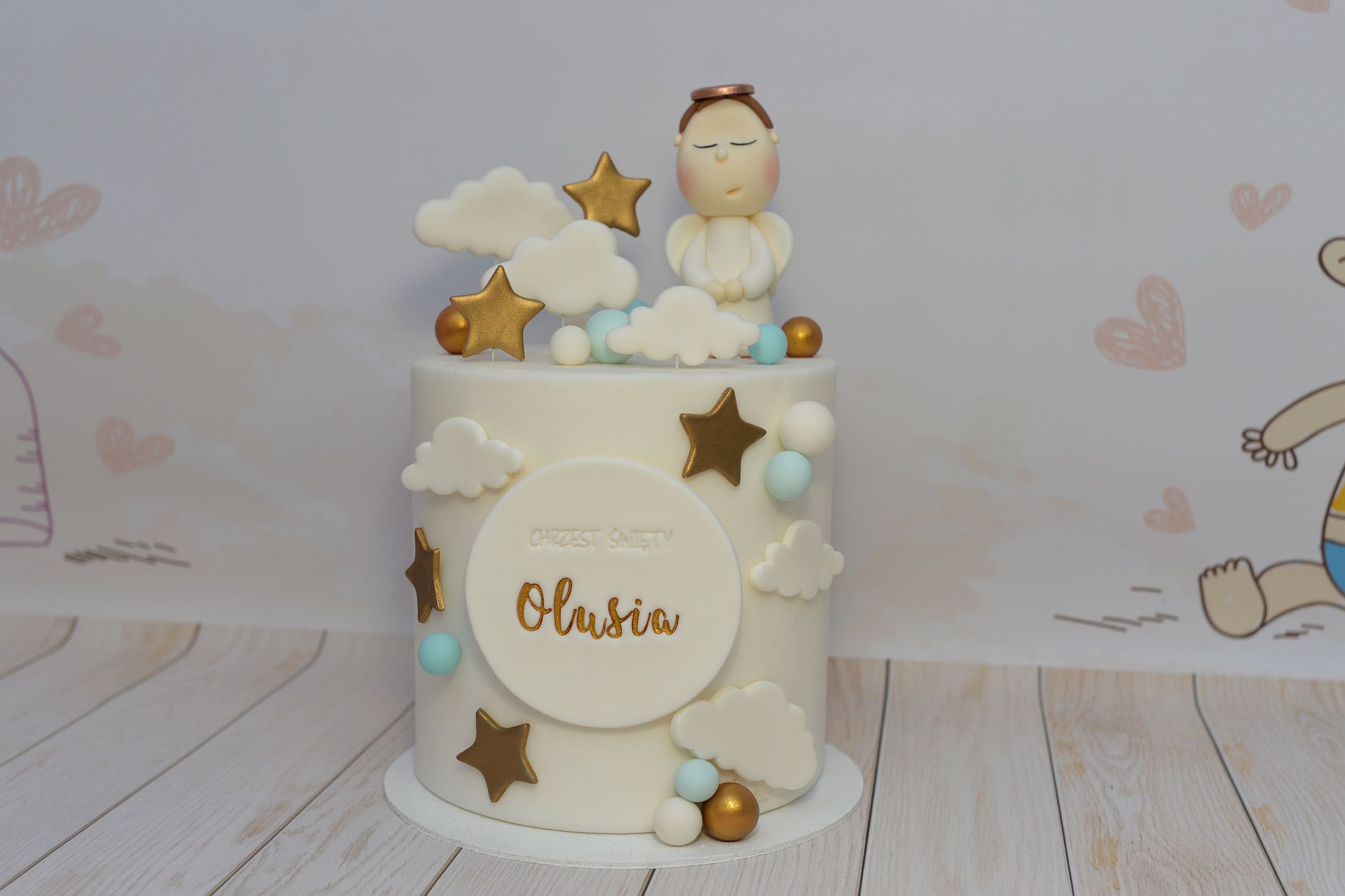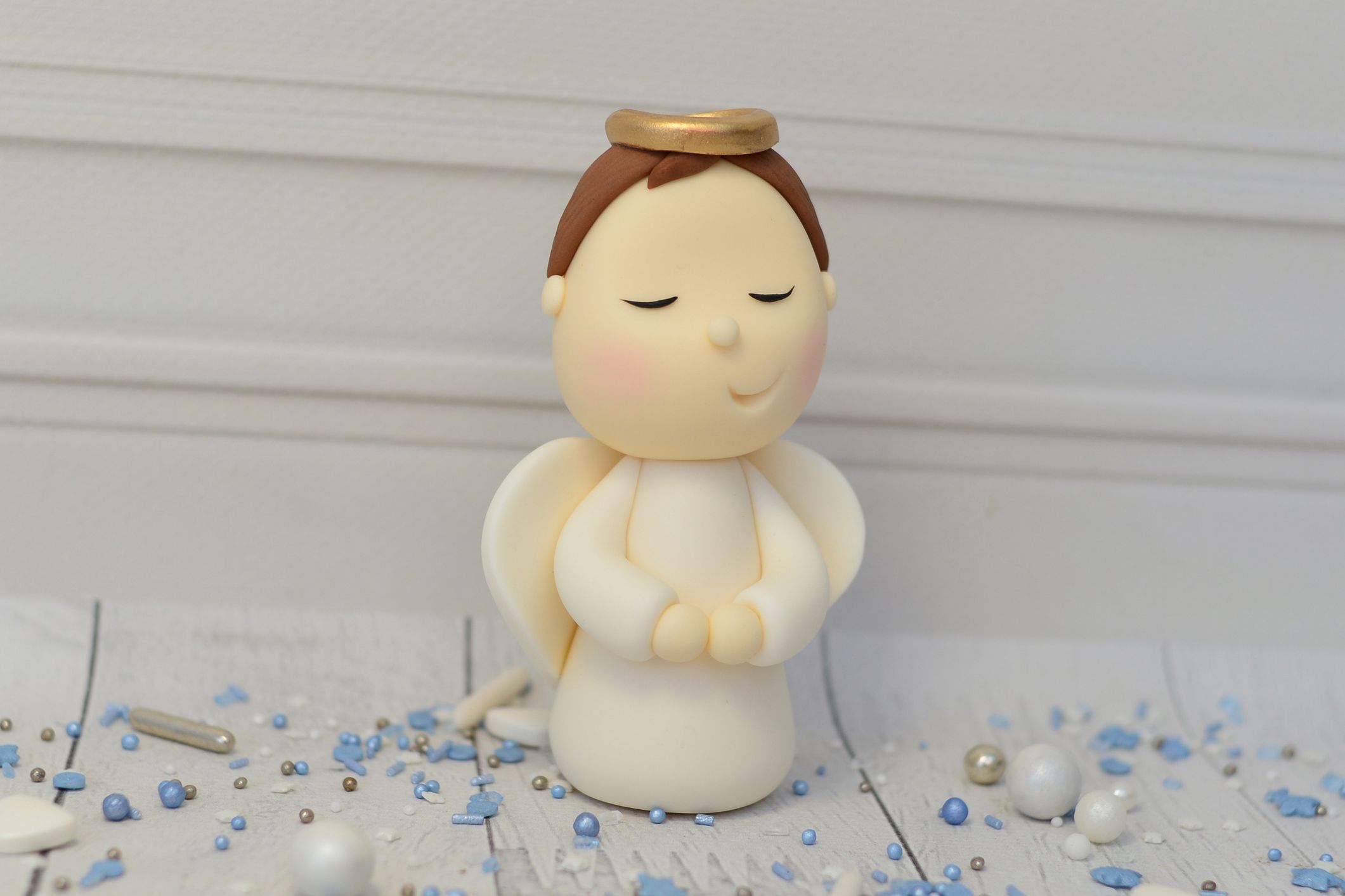 Ten uroczy, ręcznie wykonany aniołek to idealna dekoracja na tort z okazji:
