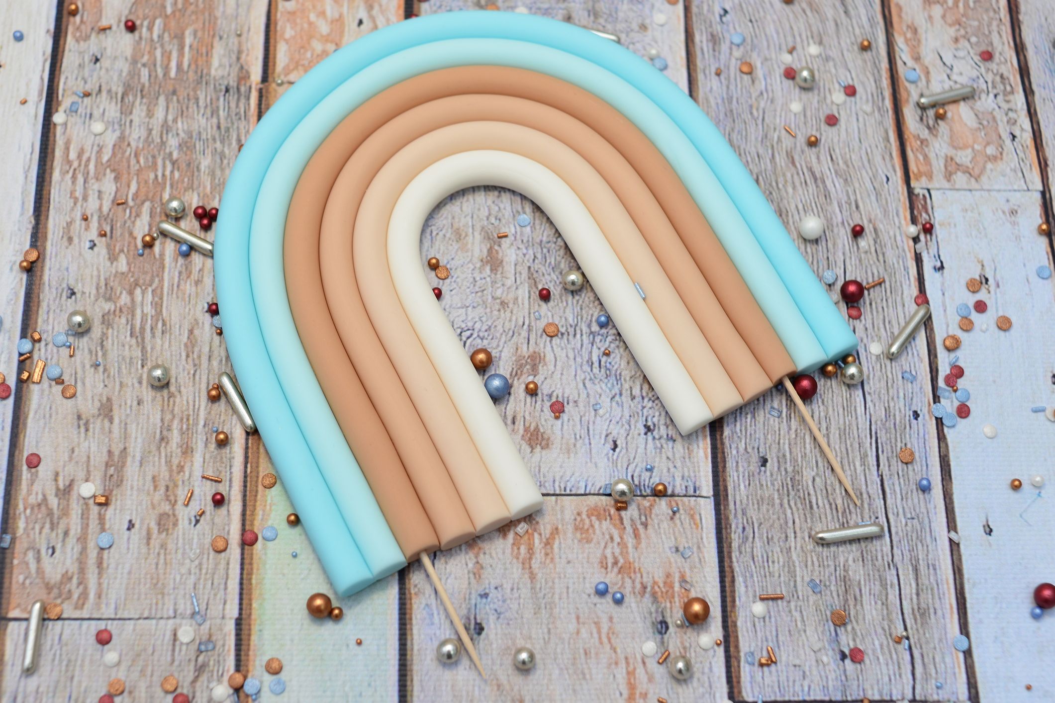 Pastelowa dekoracja w formie tęczy, która robi robotę! Aż 15 cm szerokości – idealna jako centralny element tortu. Utrzymana w uroczych odcieniach błękitu, beżu i bieli, świetnie sprawdzi się na przyjęciach urodzinowych, baby shower czy chrzcinach.