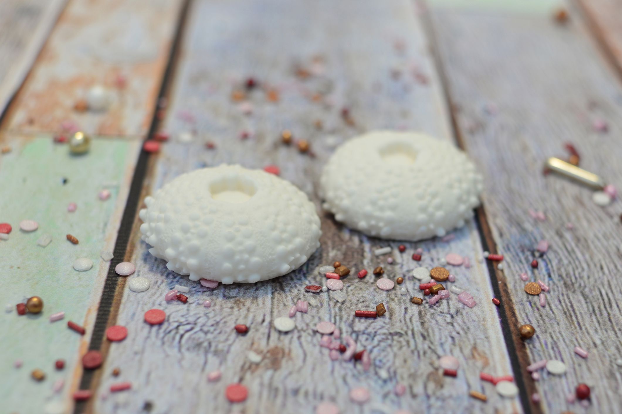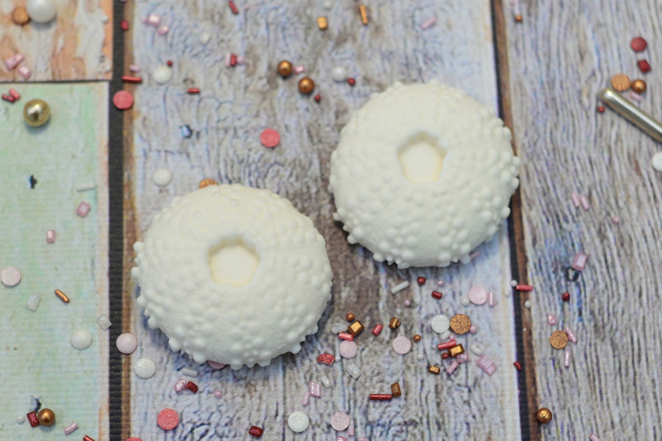 Dodaj swojemu tortowi prawdziwie oceanicznego charakteru! Te dekoracje w kształcie jeżowców w kolorze białym to idealny dodatek do wypieków w stylu: