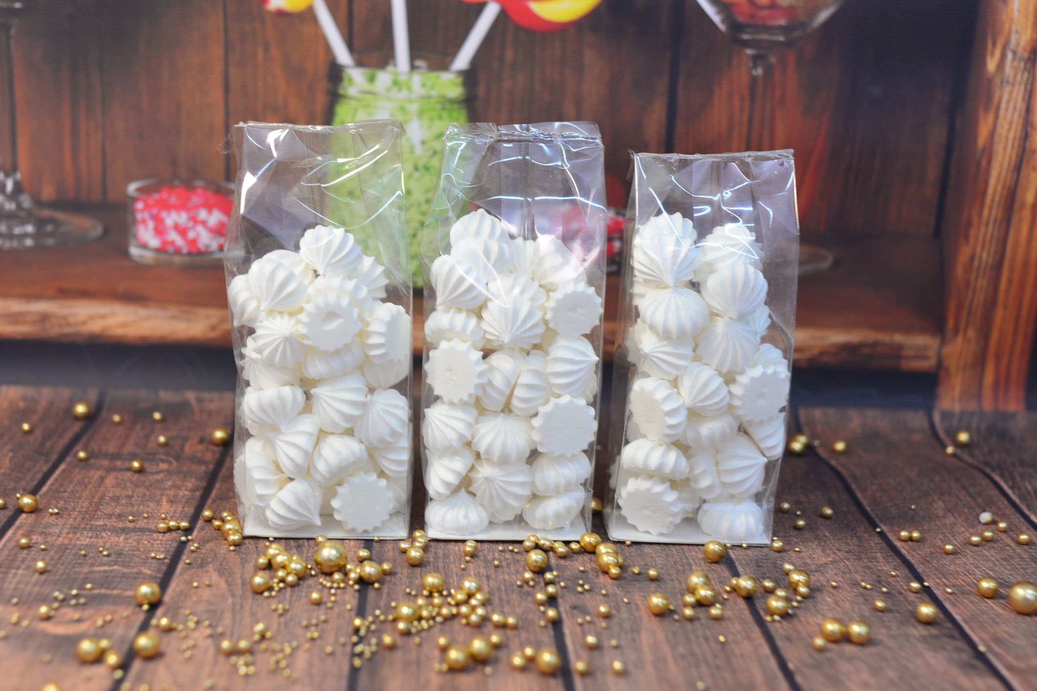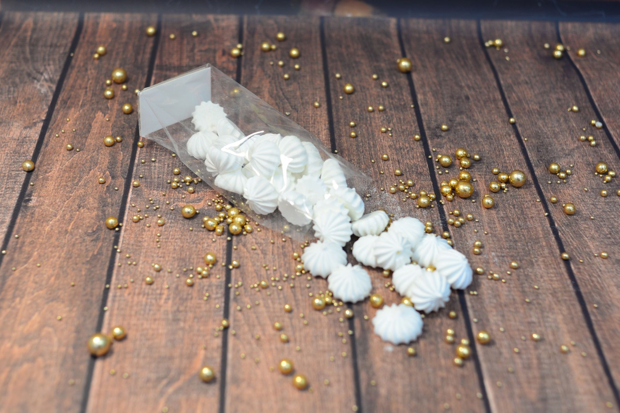 • minimum 25 gram w opakowaniu (od 30 do 35 sztuk). Ilość bezików uzależniona jest od ich wagi i wielkości (około 1,5 cm), ponieważ produkt robiony jest ręcznie.