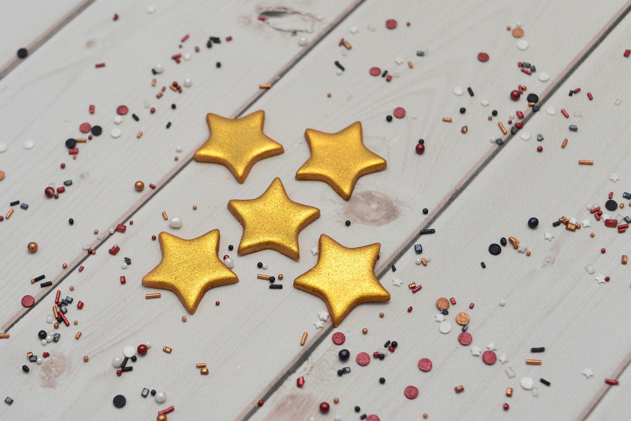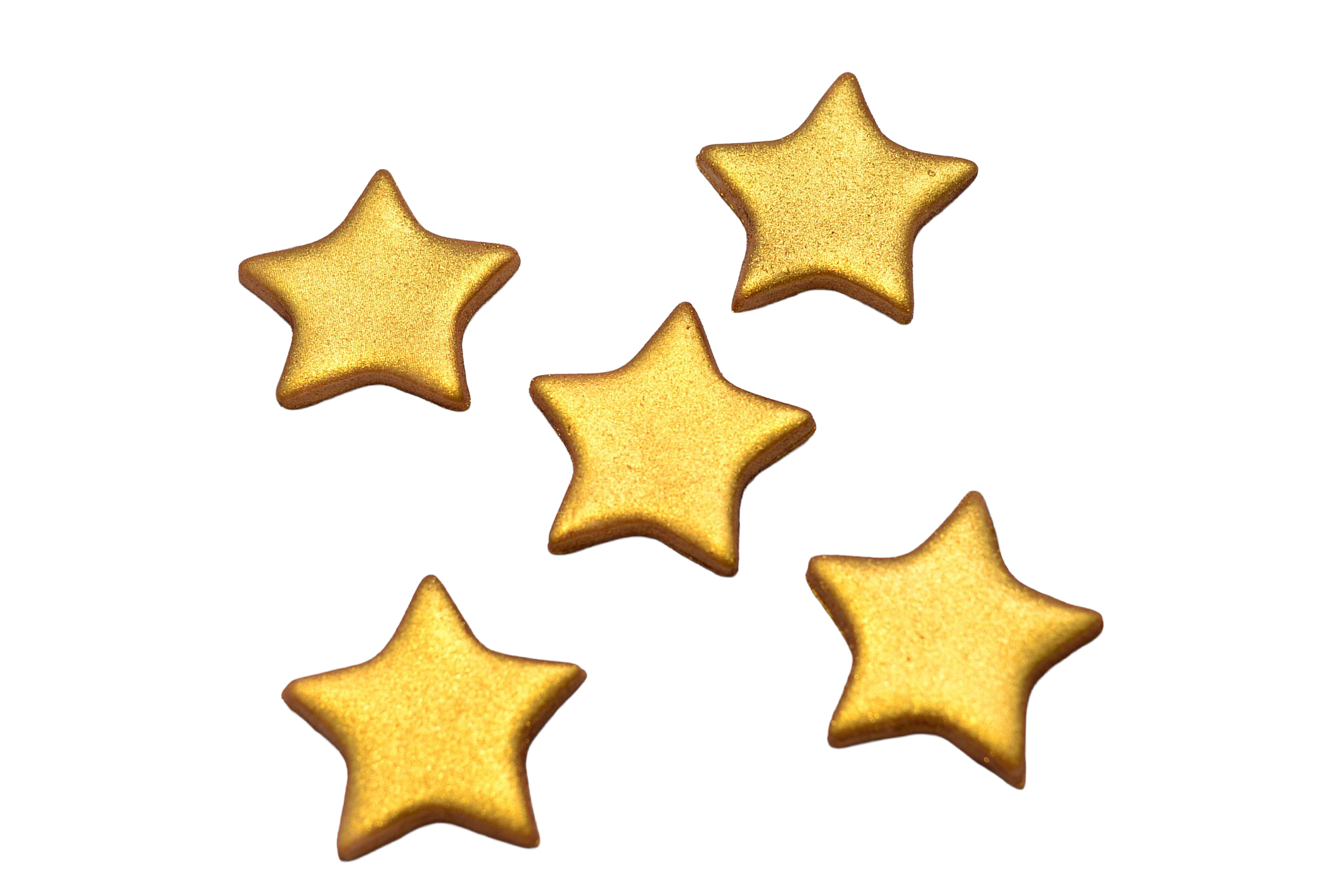 Dzięki Naszym gwiazdkom jest to możliwe. Starannie wykonane, perfekcyjnie pomalowane złotym spożywczym barwnikiem.