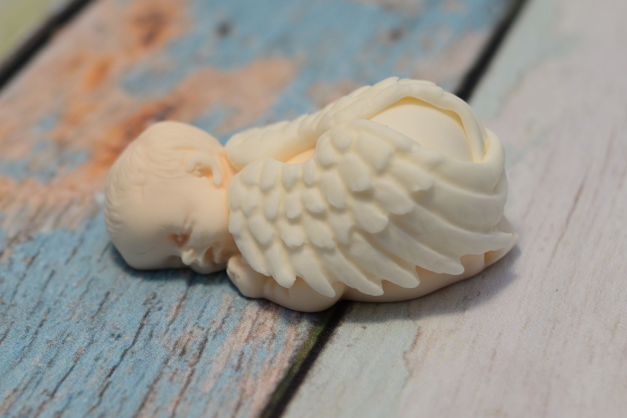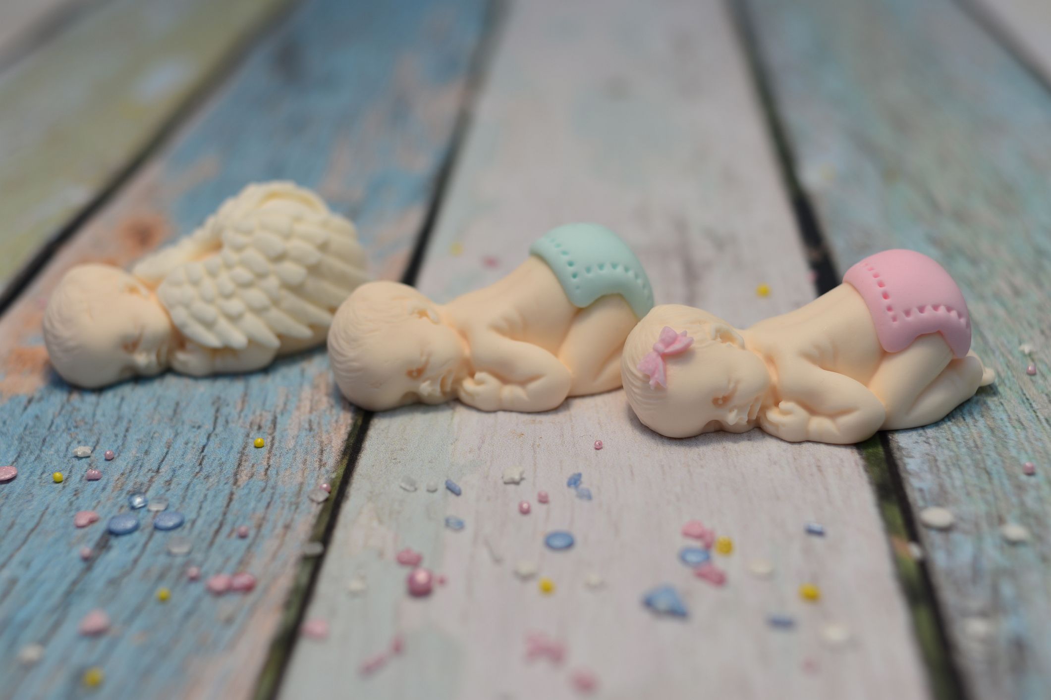Przedstawiamy wyjątkową dekorację tortu. Figurka śpiącego dzidziusia, w pieluszce, otulonego skrzydełkami.