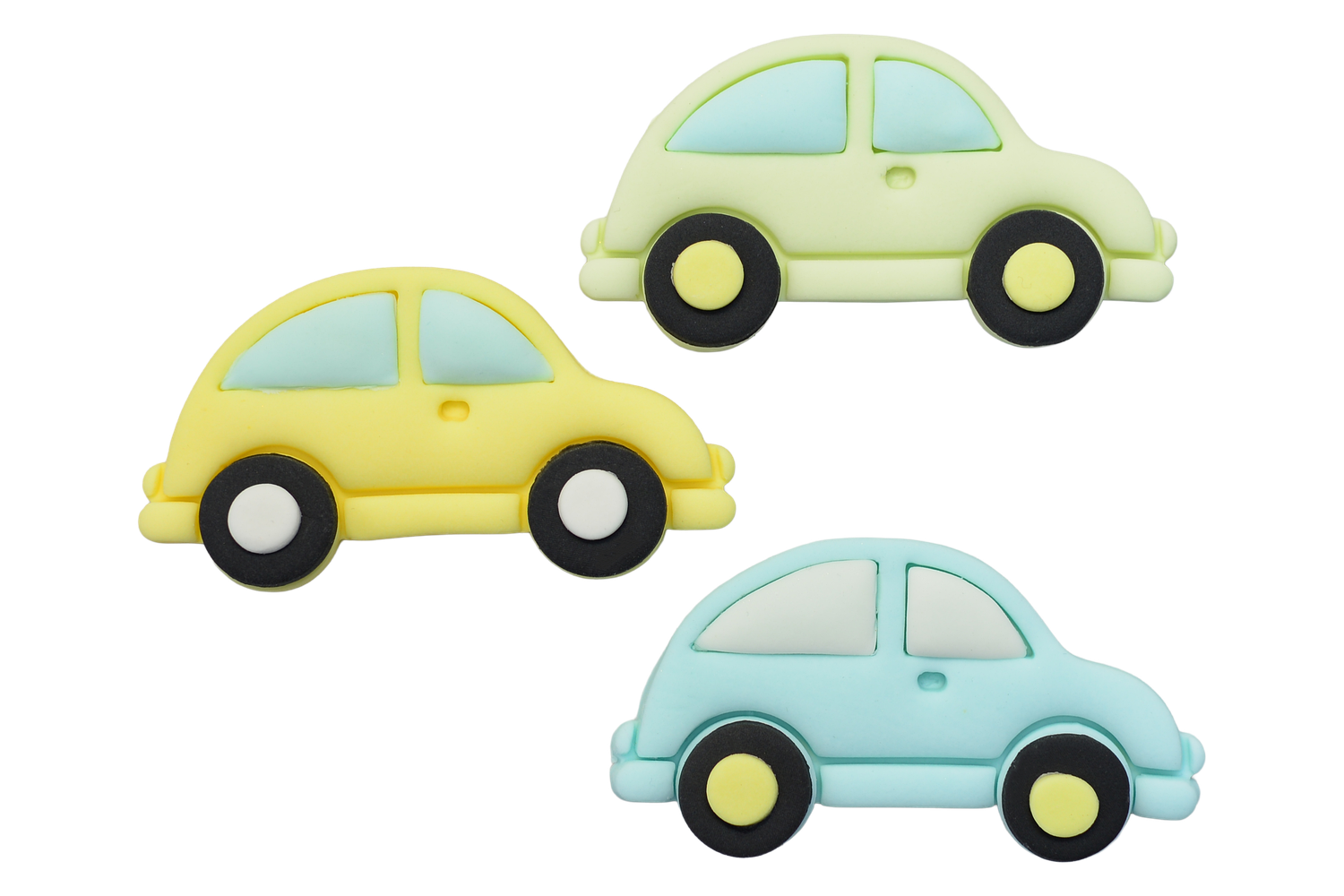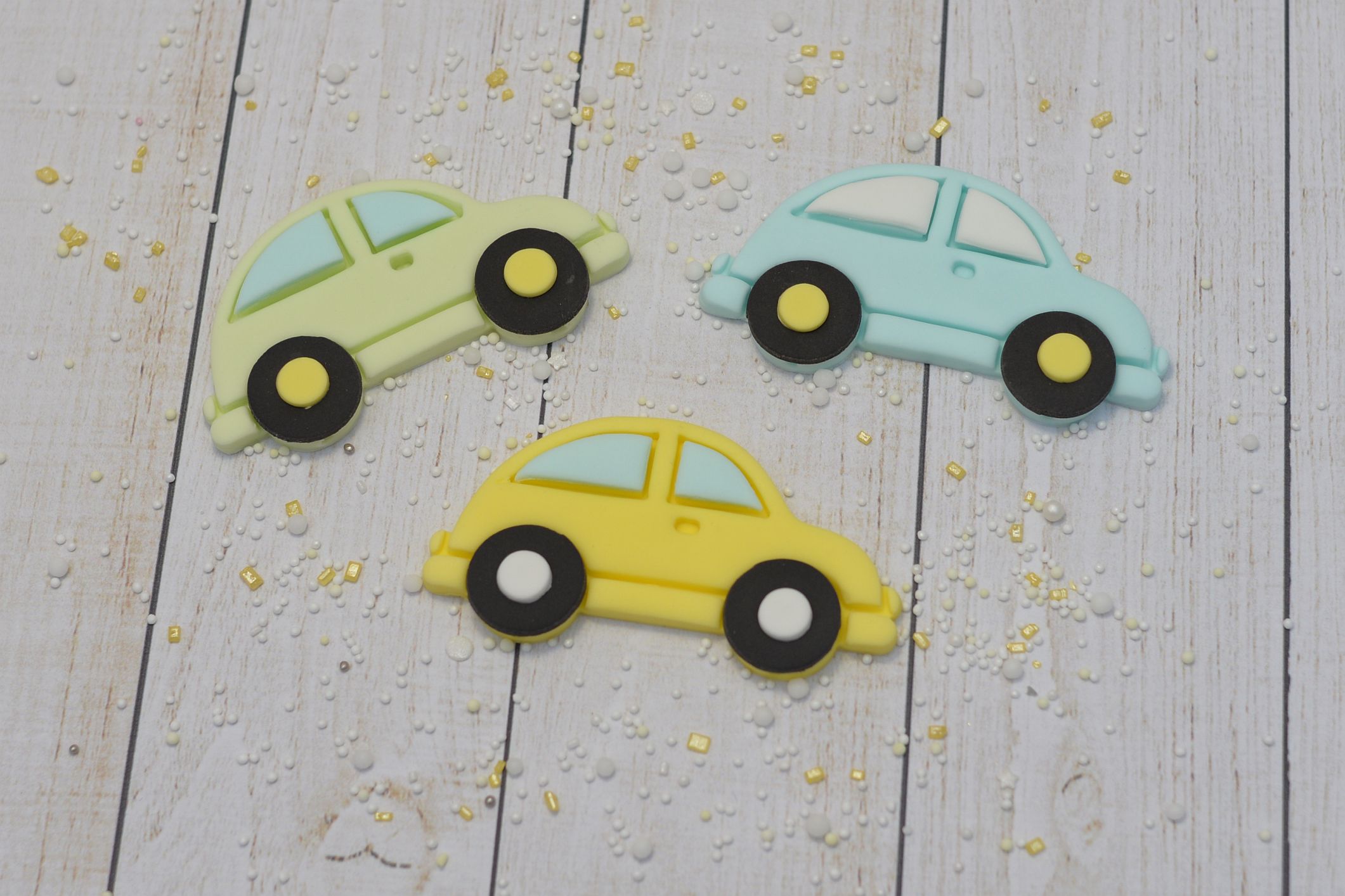 👉Autka są płaskie, ale z łatwością zamocujesz je na wierzchołku tortu. W każdym autku, w kołach przygotowaliśmy otwór do którego możesz włożyć wykałaczkę i wbić w tort. Figurki możesz też oprzeć o front tortu.