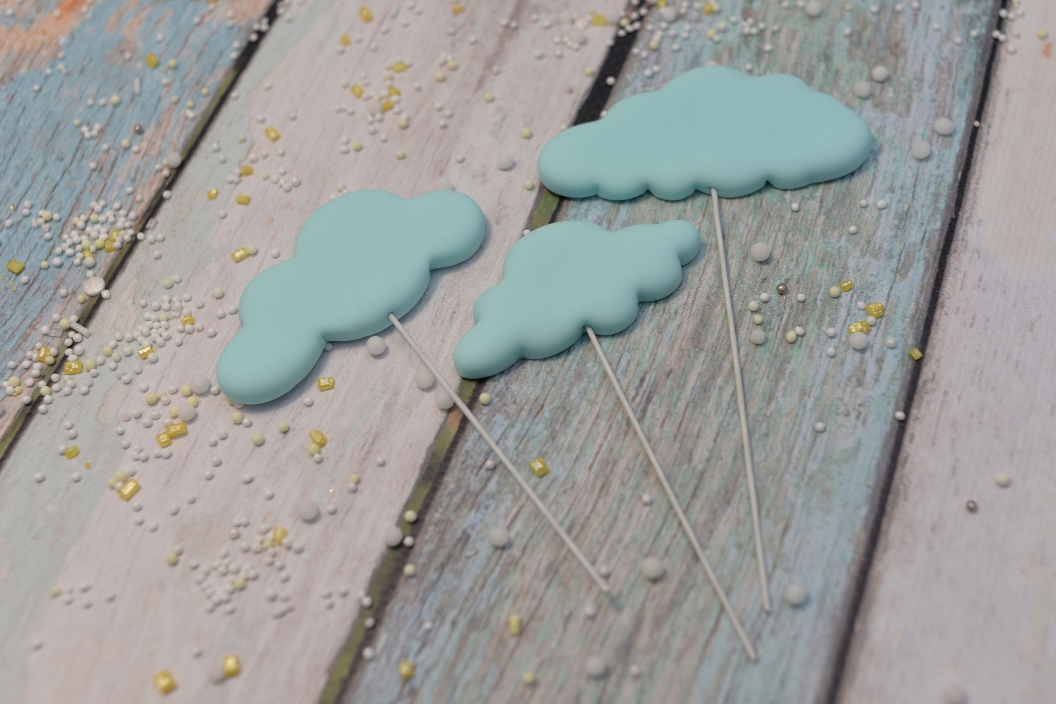 Chmurki wykonane z masy cukrowej to ponadczasowa dekoracja. Pasują niemalże do każdej dekoracji tortu. Wzbogacają wypiek, są doskonałym uzupełnieniem, dodają lekkości.