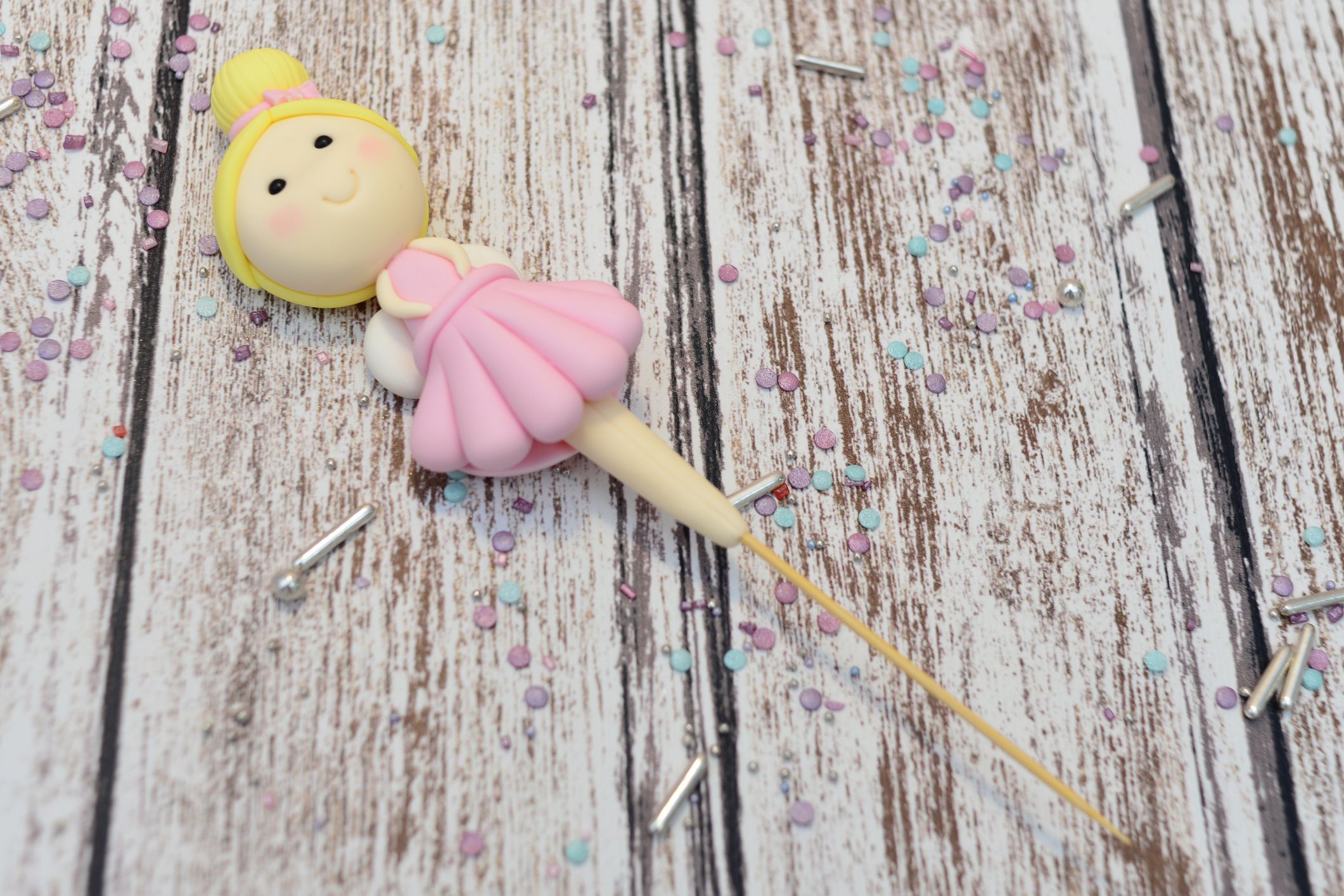 Figurka umieszczona jest na wykałaczce, co umożliwia łatwe i stabilne zamocowanie jej na torcie.