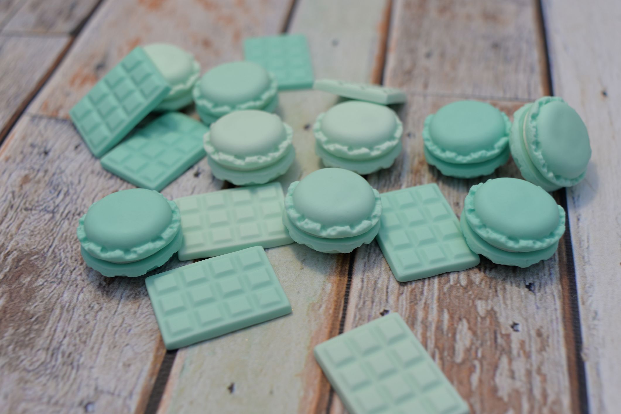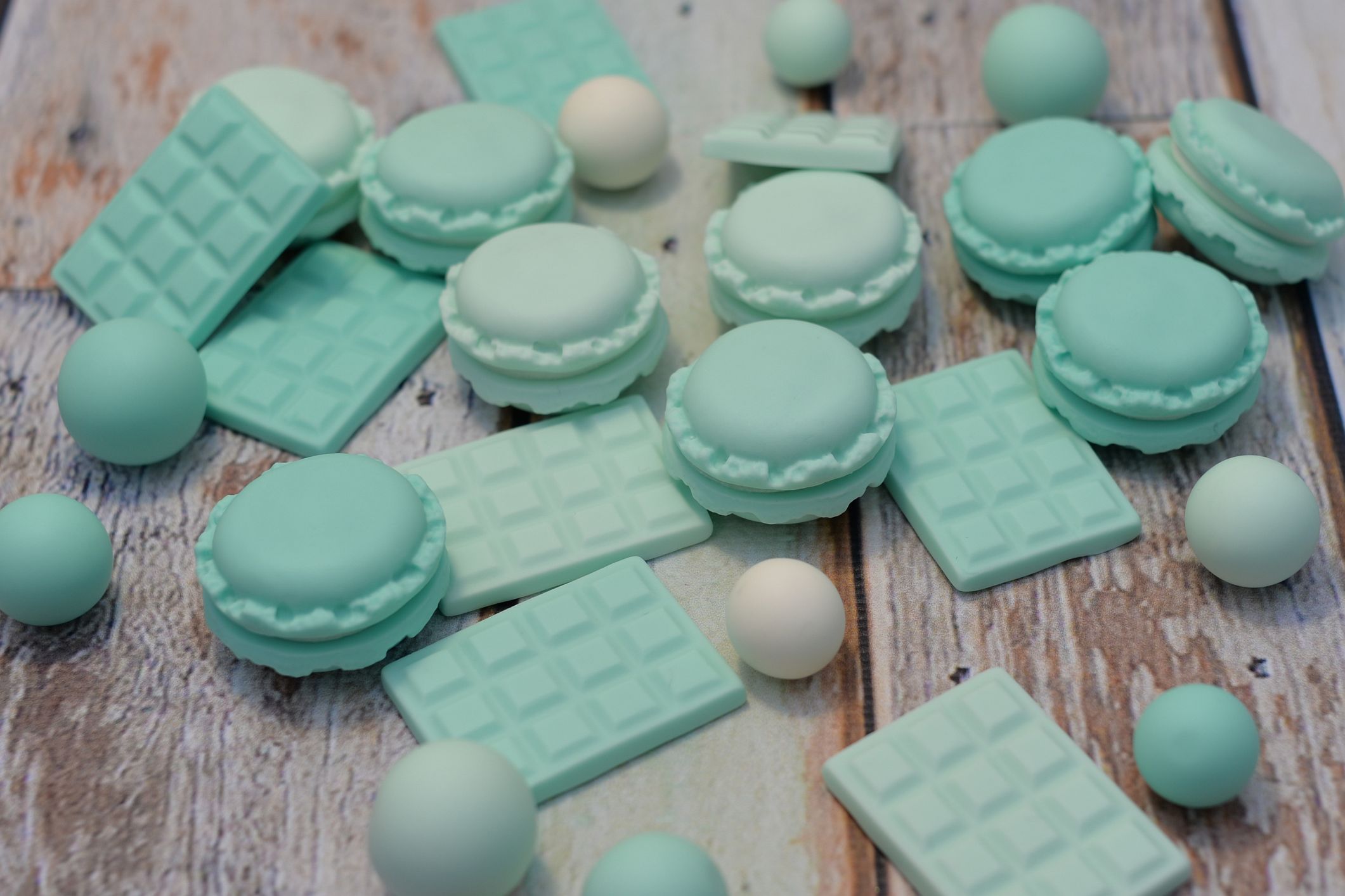Przedstawiamy trzy wyjątkowe sztuki mini czekoladek wykonanych w całości z masy cukrowej w trzech odcieniach koloru miętowego. To drobne, ale niezwykle urocze dekoracje, które dodadzą wyjątkowego uroku Twoim słodkim kreacjom.