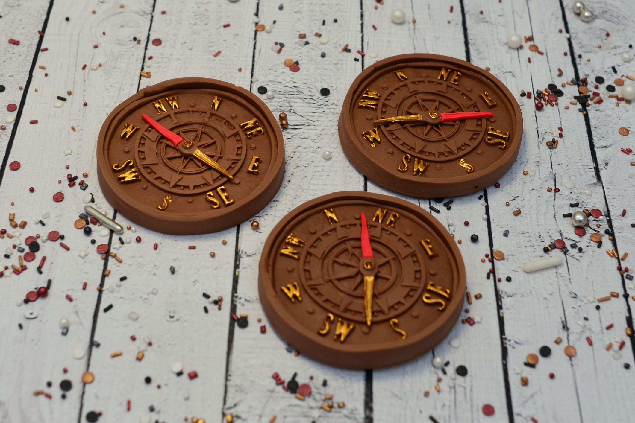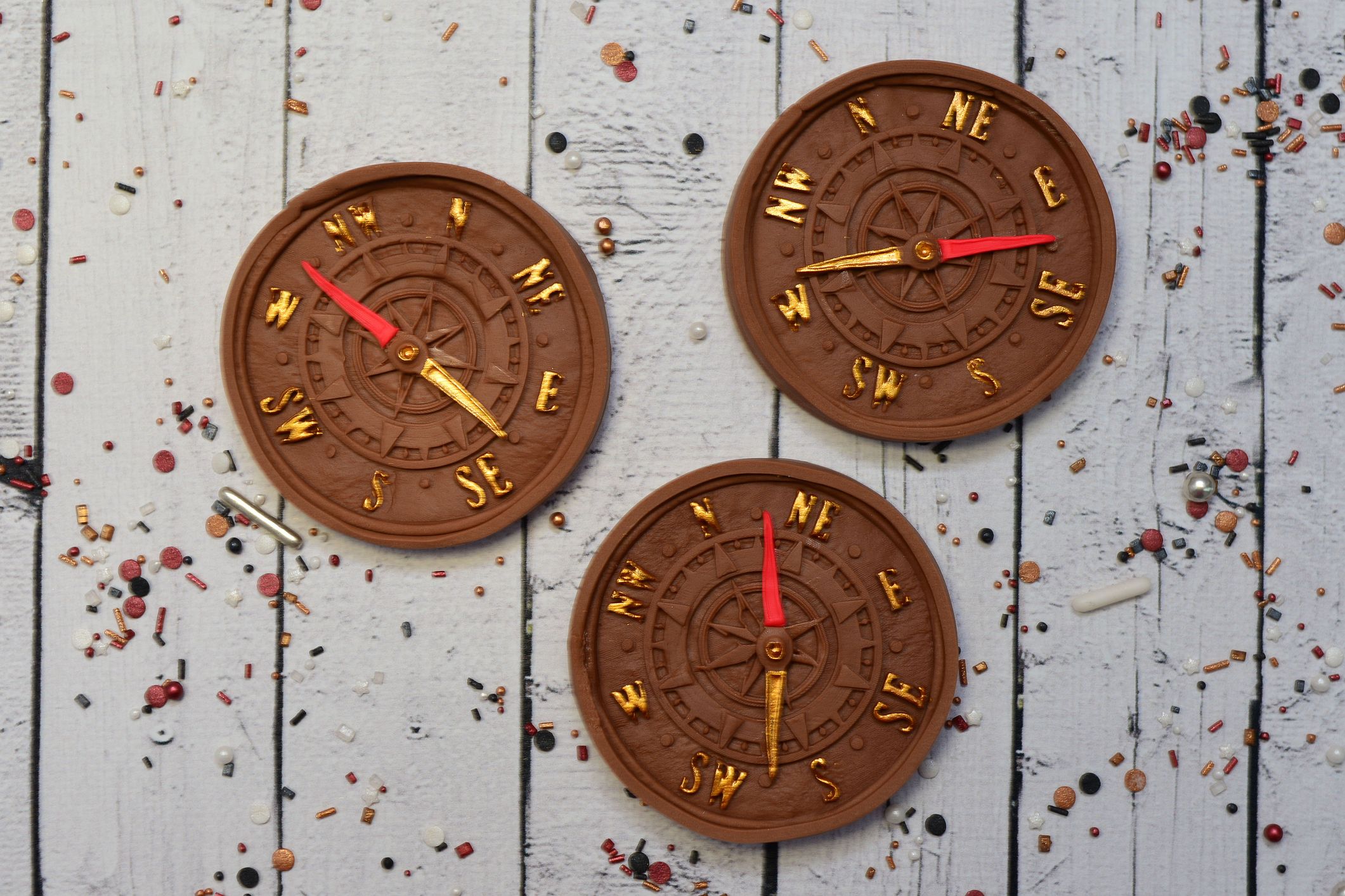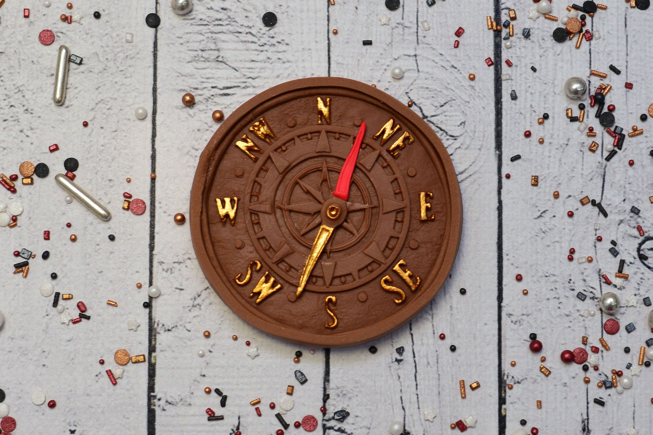 Ręcznie wykonany z masy cukrowej Kompas w kolorze ciepłego brązu ze złotymi detalami to dekoracja, która nada Twoim wypiekom głebi, symboliki i klasy.