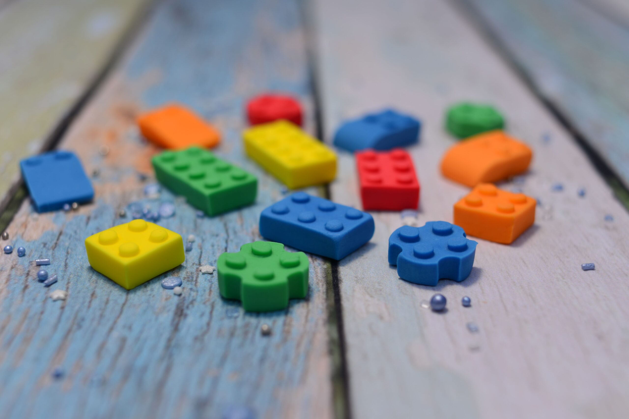 Udekoruj swoje słodycze klockami wykonanymi z masy cukrowej.