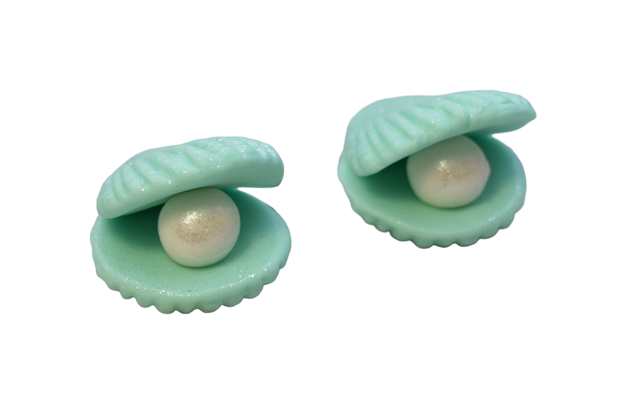 Zestaw 2 szt turkusowych muszelek z perłą