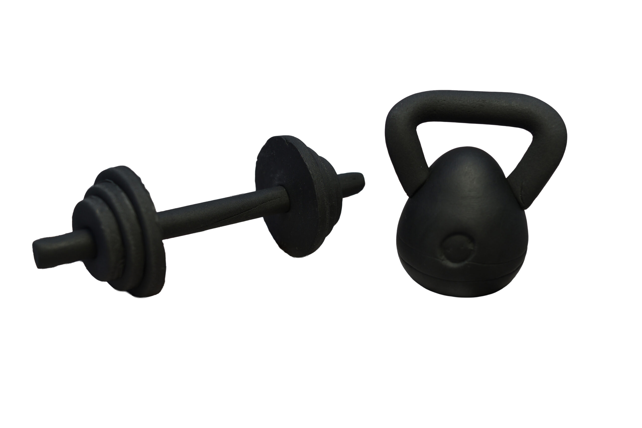 W zestawie sztanga i kettebell.