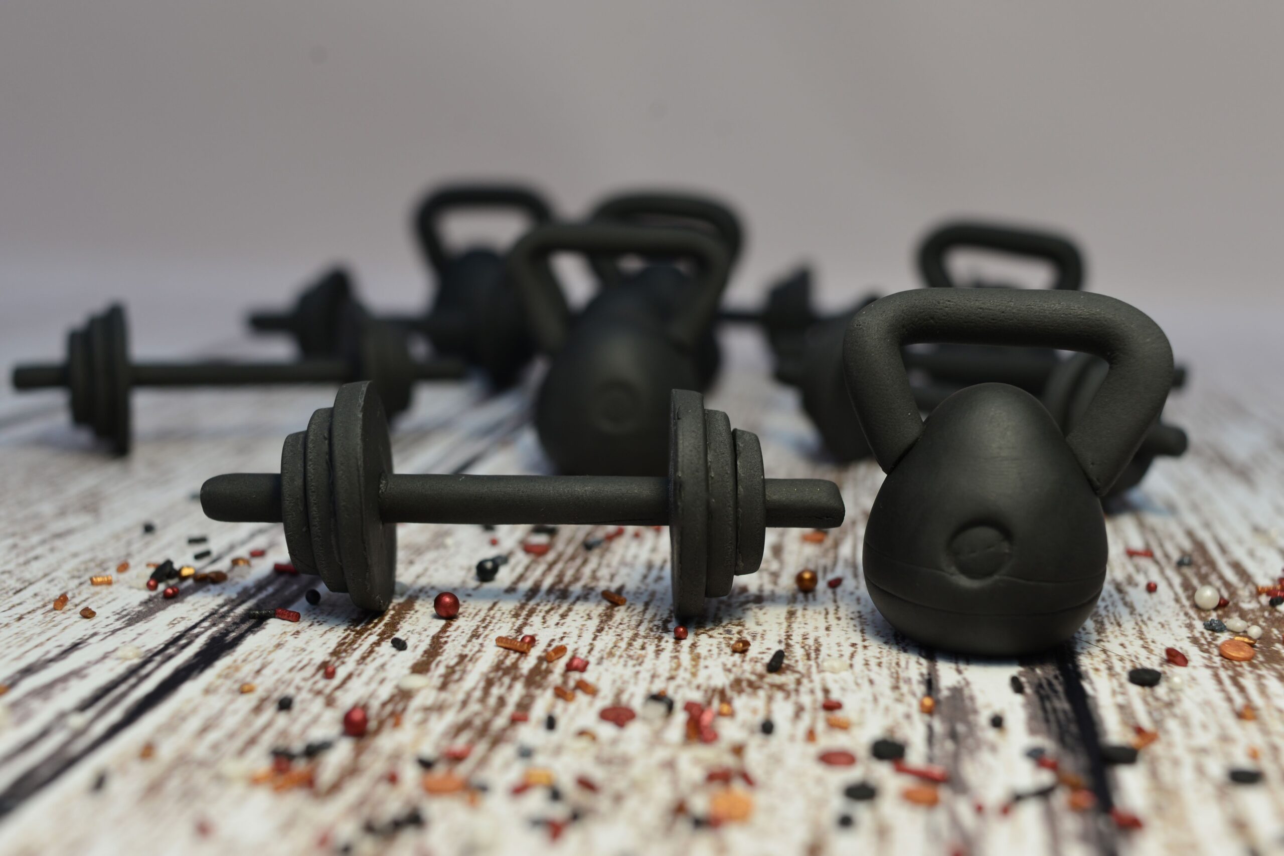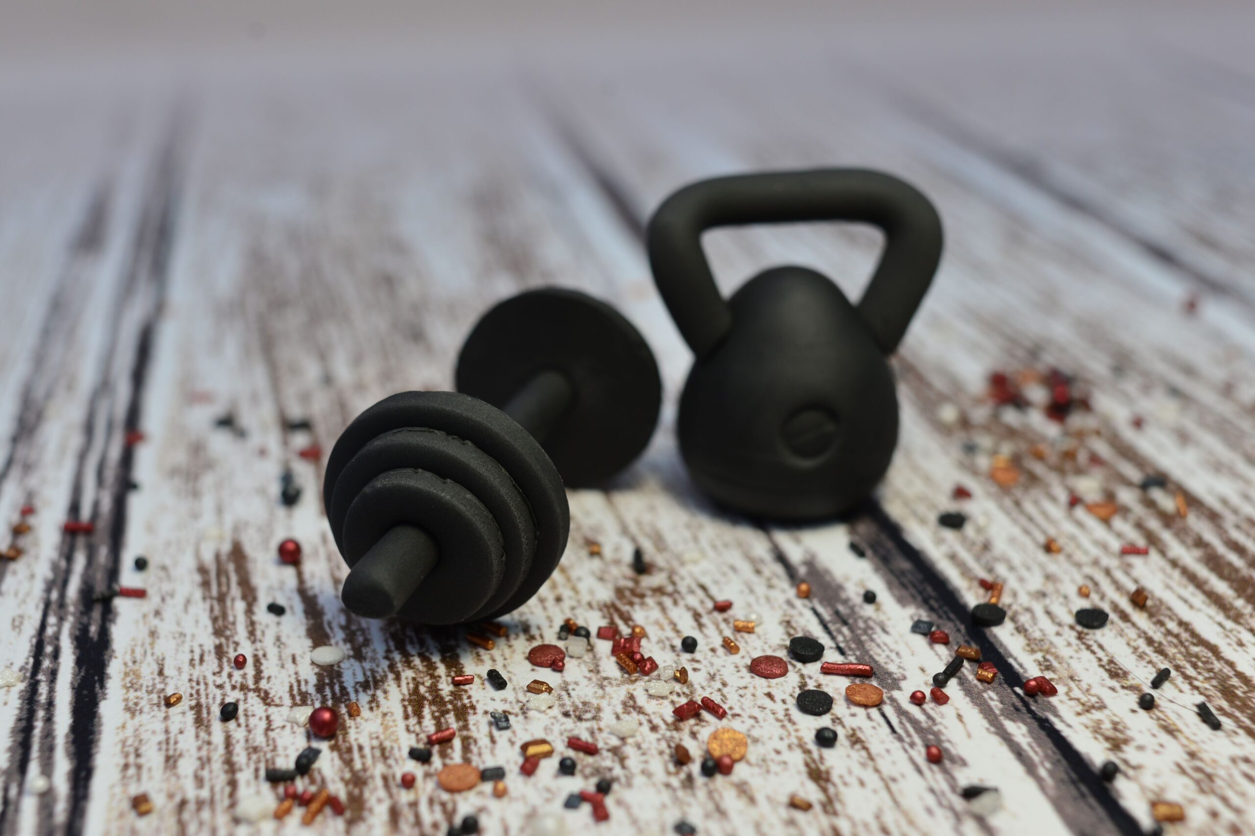 Wspaniałe ozdoby cukrowe na tort dla miłośników sportów siłowych.