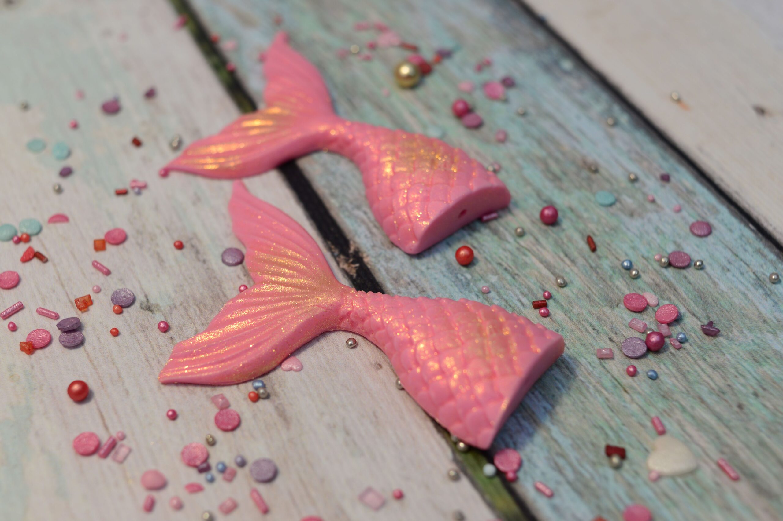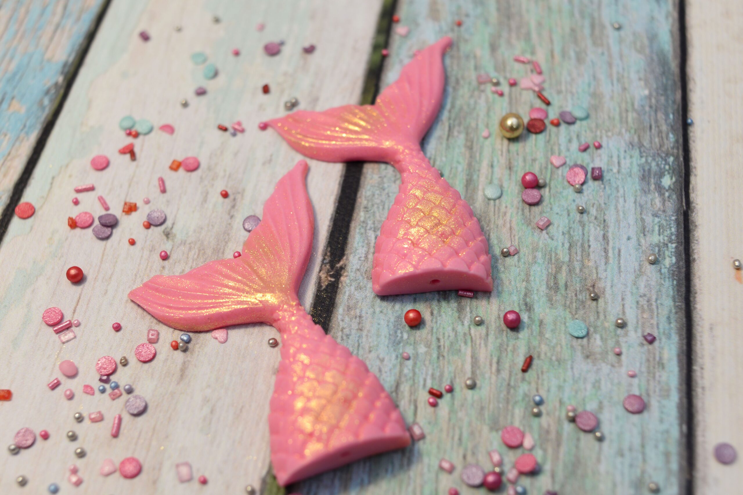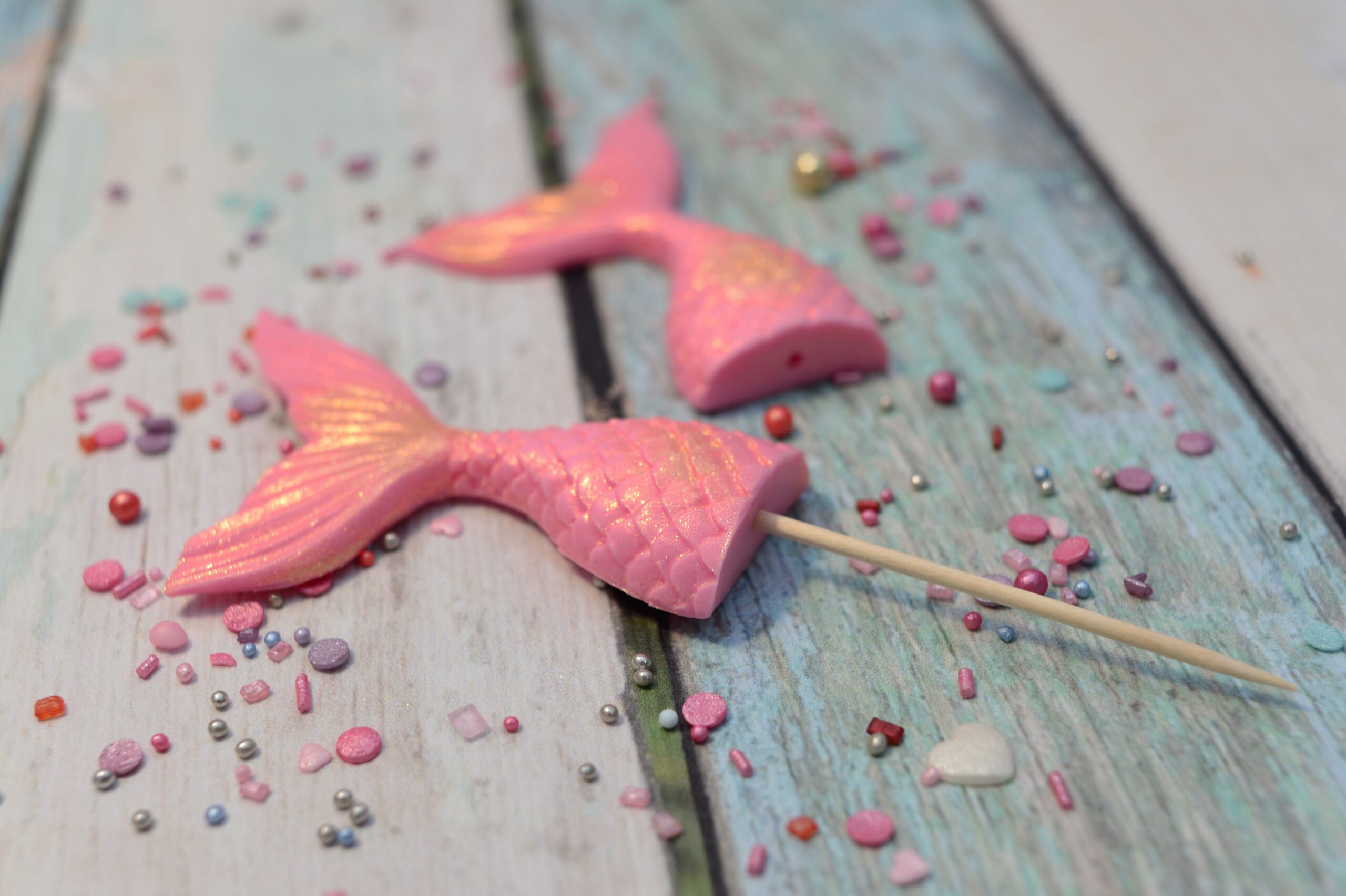 Zanurz się w magicznym, podwodnym świecie! Te różowe ogony syrenki to wyjątkowe dekoracje, które wprowadzą bajkowy klimat na Twój tort. Idealnie sprawdzą się na przyjęcia urodzinowe w stylu syrenki Arielki, oceanicznej krainy czy wakacyjnej imprezy.