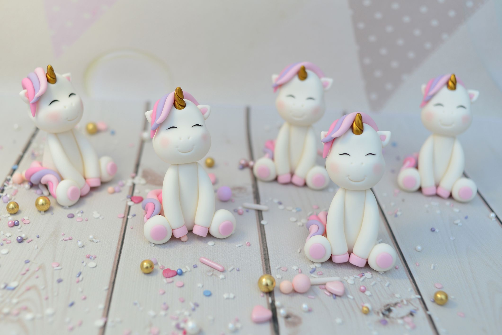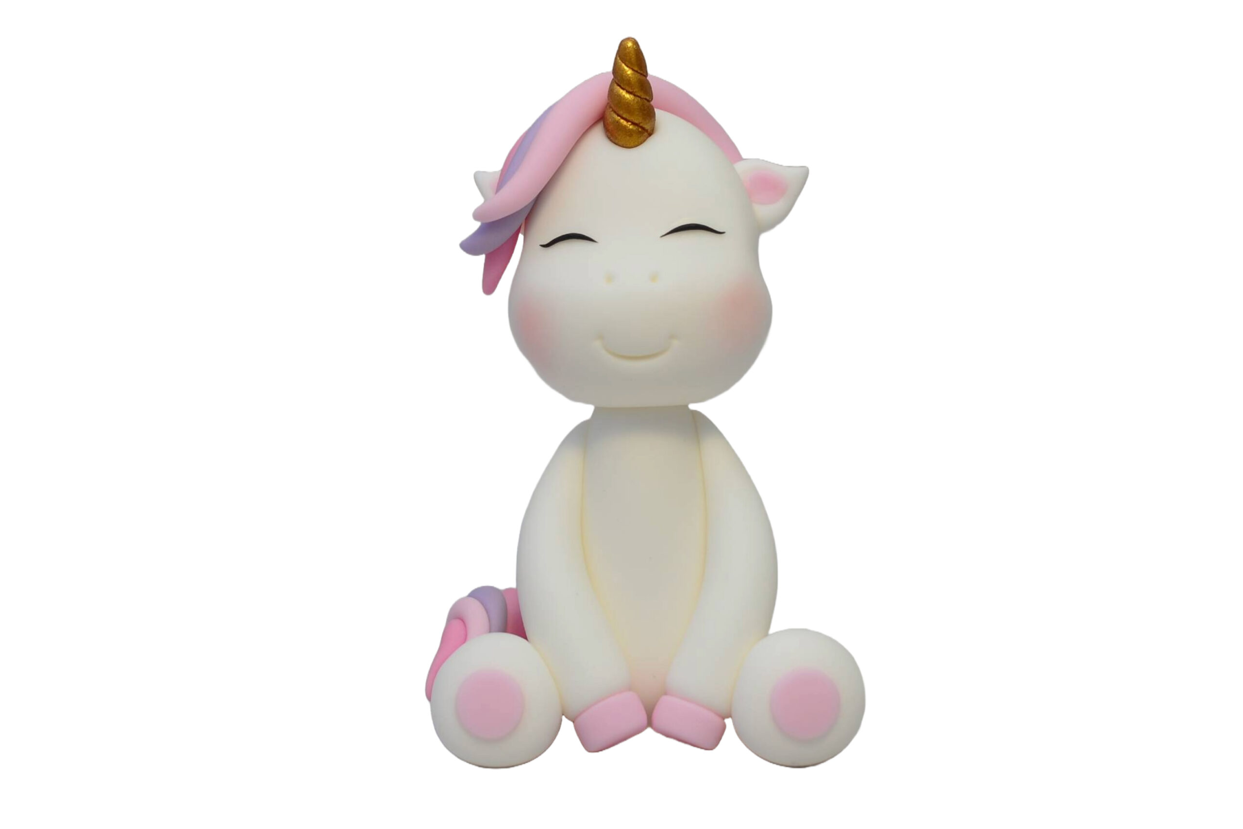 Przedstawiamy uroczego jednorożca ze złotym rogiem, wykonanego z masy cukrowej. Jest to niezwykle efektowna dekoracja, która skradnie każde serce i dopełni najpiękniejszy tort!
