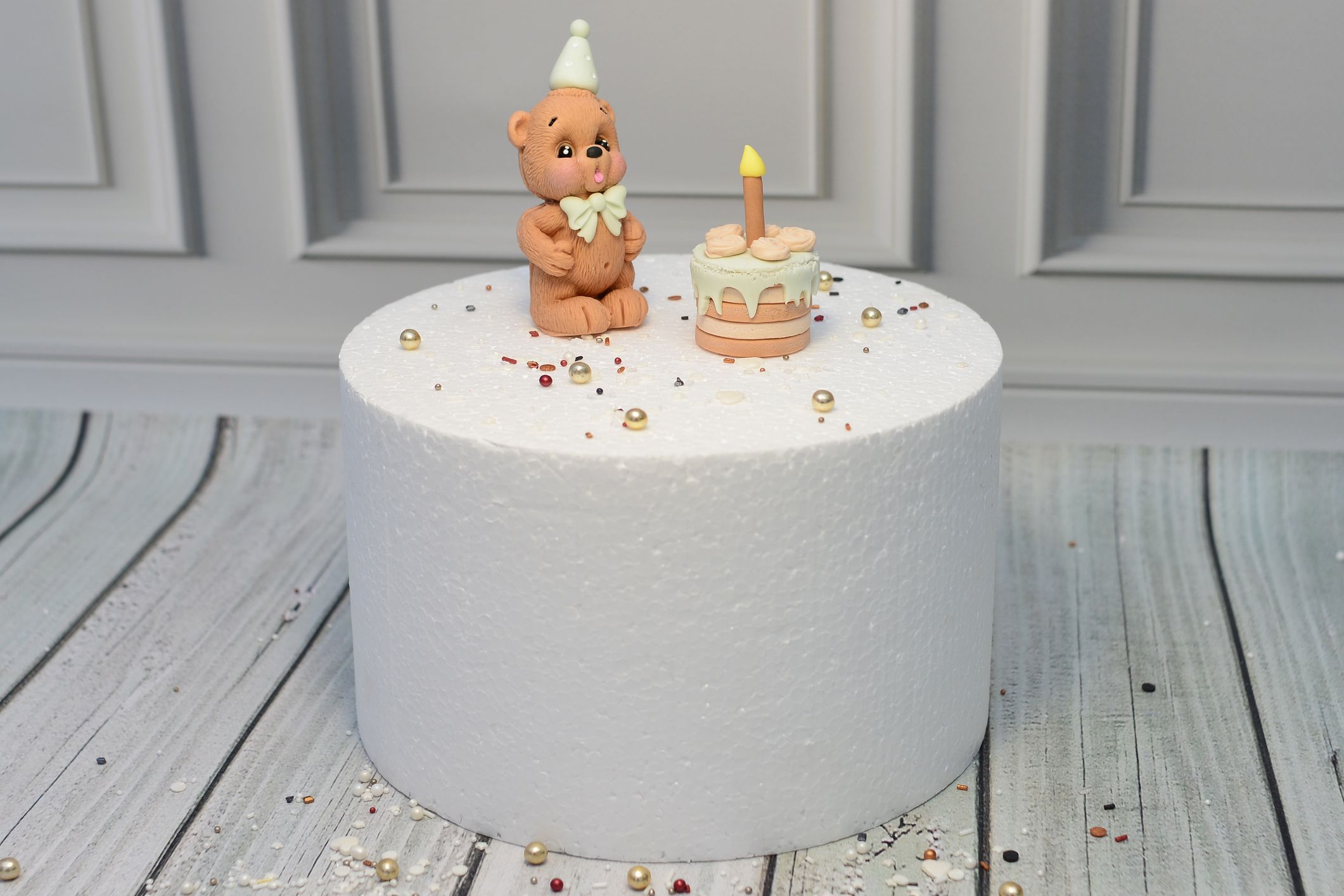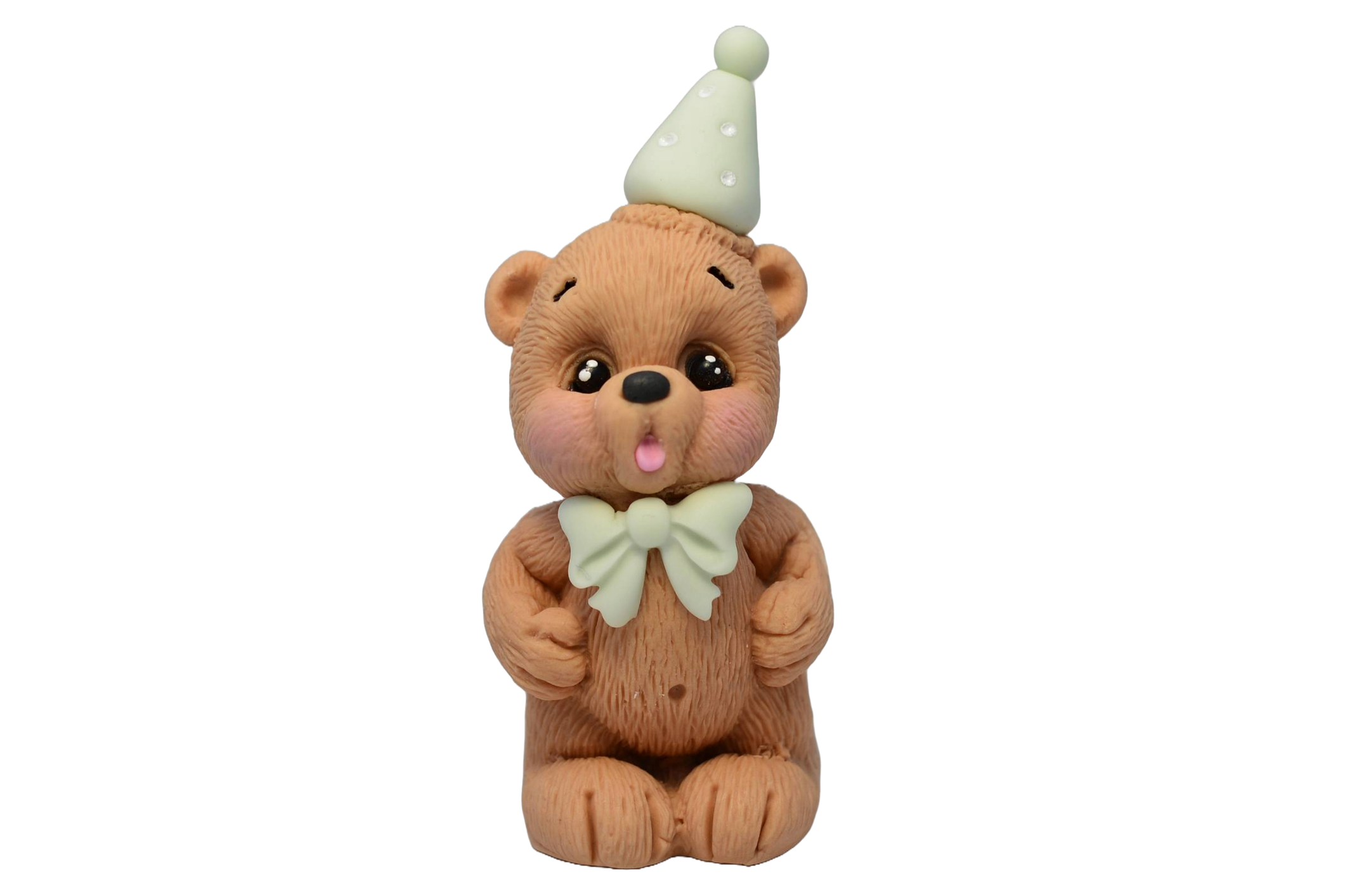 Przedstawiamy uroczego misia Felka w kolorze beżowym, wykonanego z masy cukrowej, który dmucha świeczkę. Figurka ozdobiona jest jasnozieloną czapeczką urodzinową, co dodaje jej wyjątkowego uroku. Ta efektowna dekoracja będzie wspaniałym dodatkiem do Twojego tortu – idealnym na każdą okazję, od urodzin po tematyczne przyjęcia.