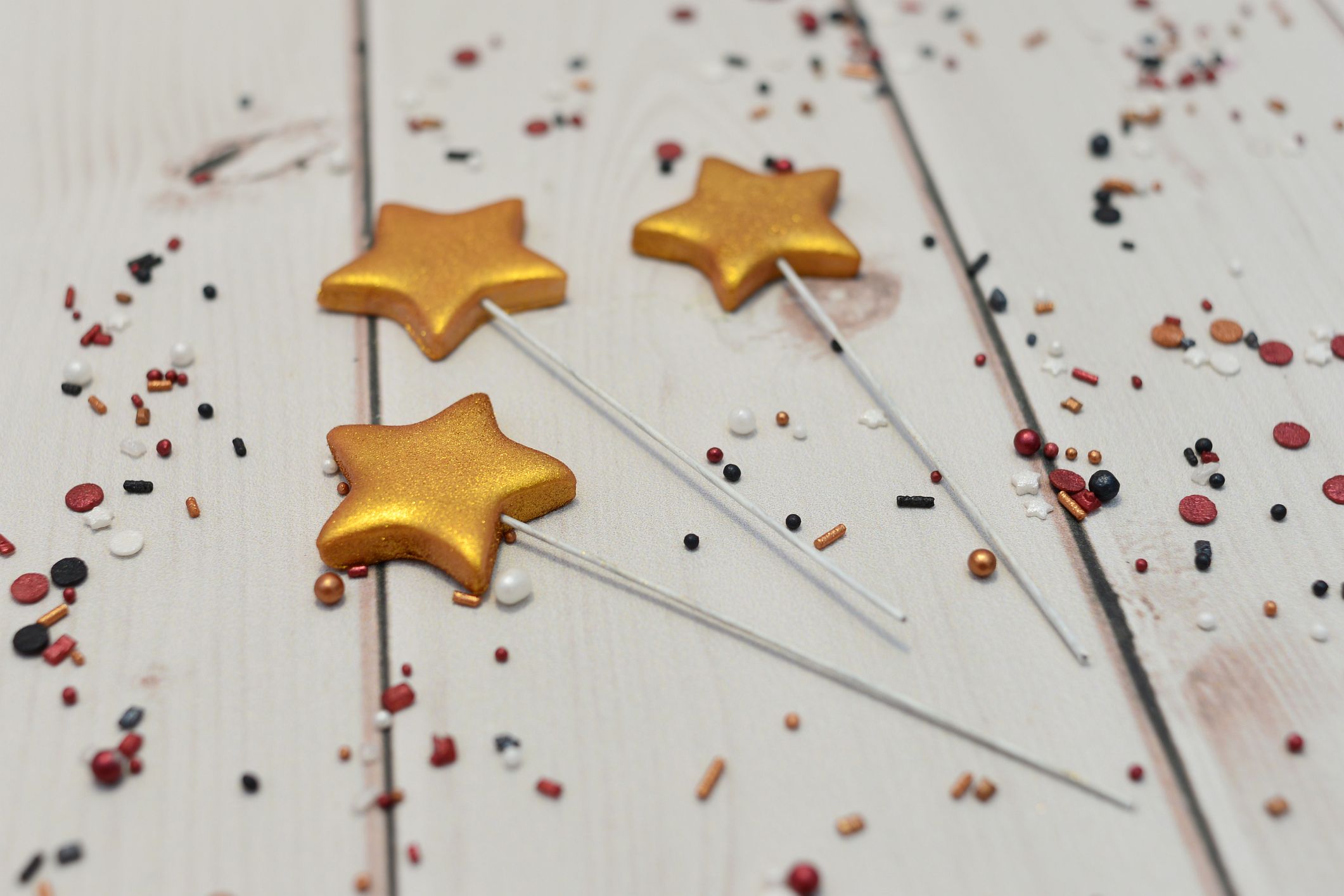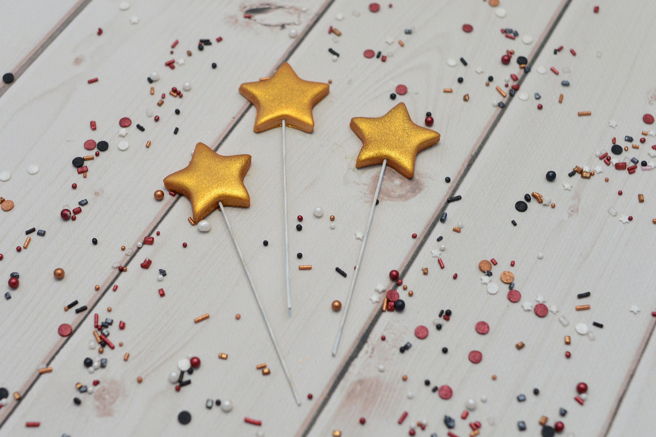 Dzięki Naszym gwiazdkom oczarujesz swoją słodka kreacją. Starannie wykonane, perfekcyjnie pomalowane złotym barwnikiem, zamocowane na druciku (barwnik i drucik dopuszczone do kontaktu z żywnością).