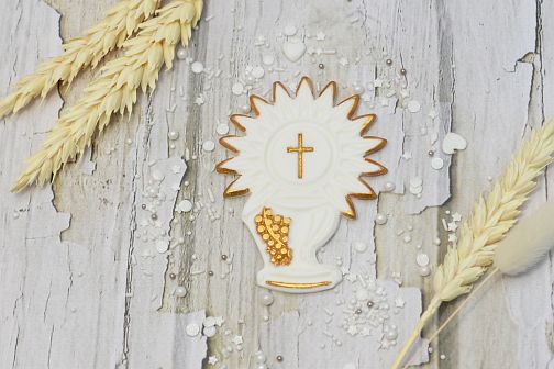 ✔ symboliczny motyw kielicha i hostii komunijnej