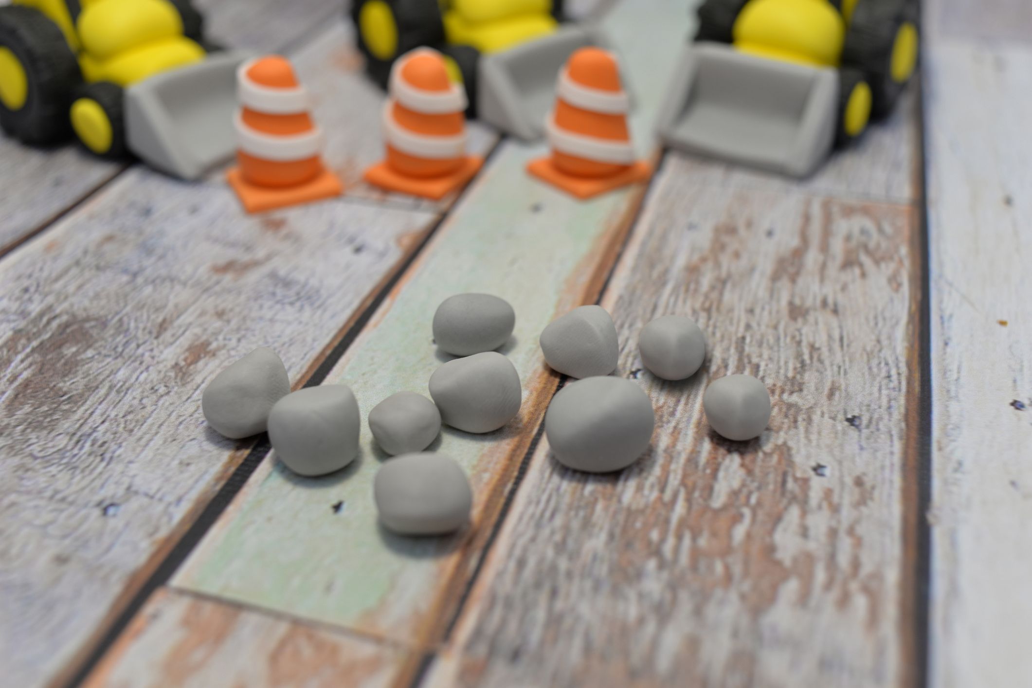 10 szt szarych kamieni, które idealnie sprawdza się jako wzbogacenie dekoracji tortu. Możesz wykorzystać je na wiele różnych sposobów: rozrzucić na torcie, załadować na przyczepę, umieścić na łyżce koparki, zrobić z nich wjazd do tunelu:)