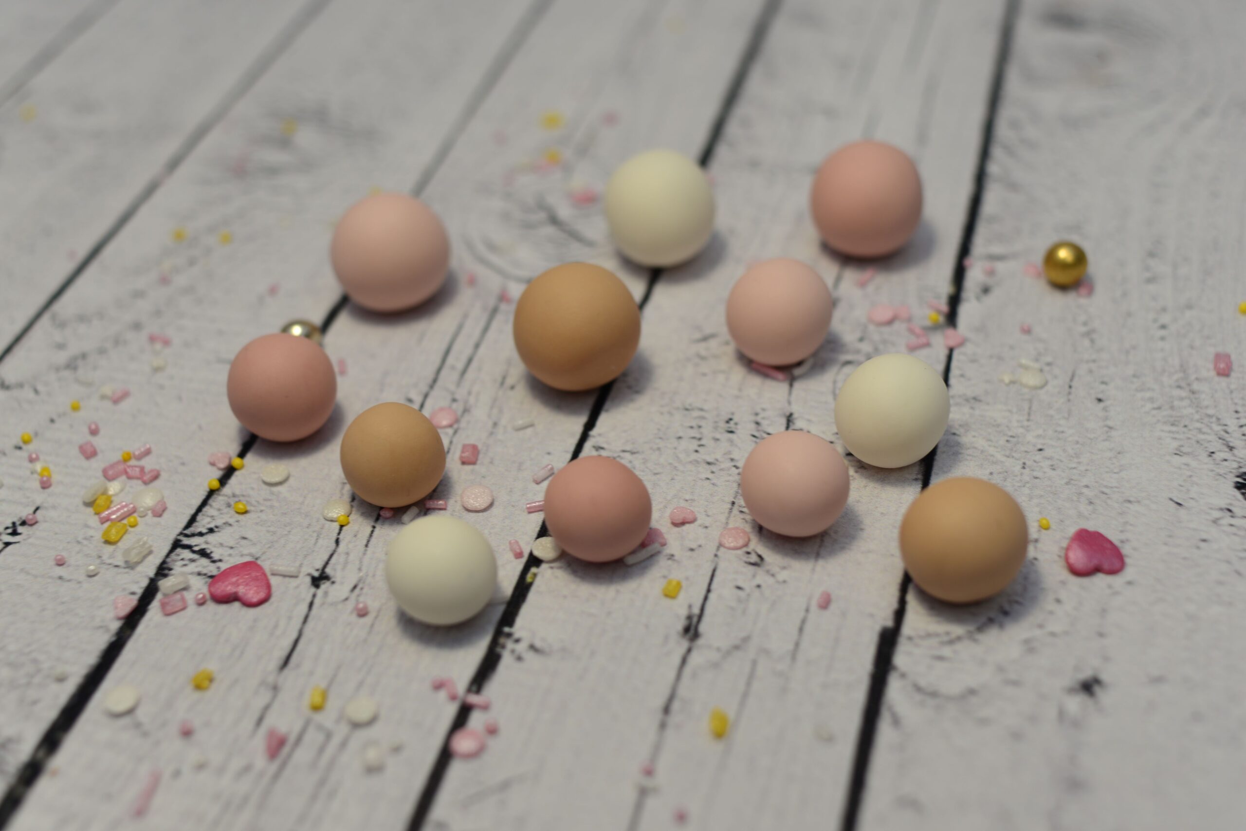 W zestawie 12 szt. kuleczek w pięknych kolorach: dwa odcienie bladego różu, beż i biel. Idealnie sprawdzą się jako np. uzupełnienie dekoracji tortu urodzinowego, czy babeczek.