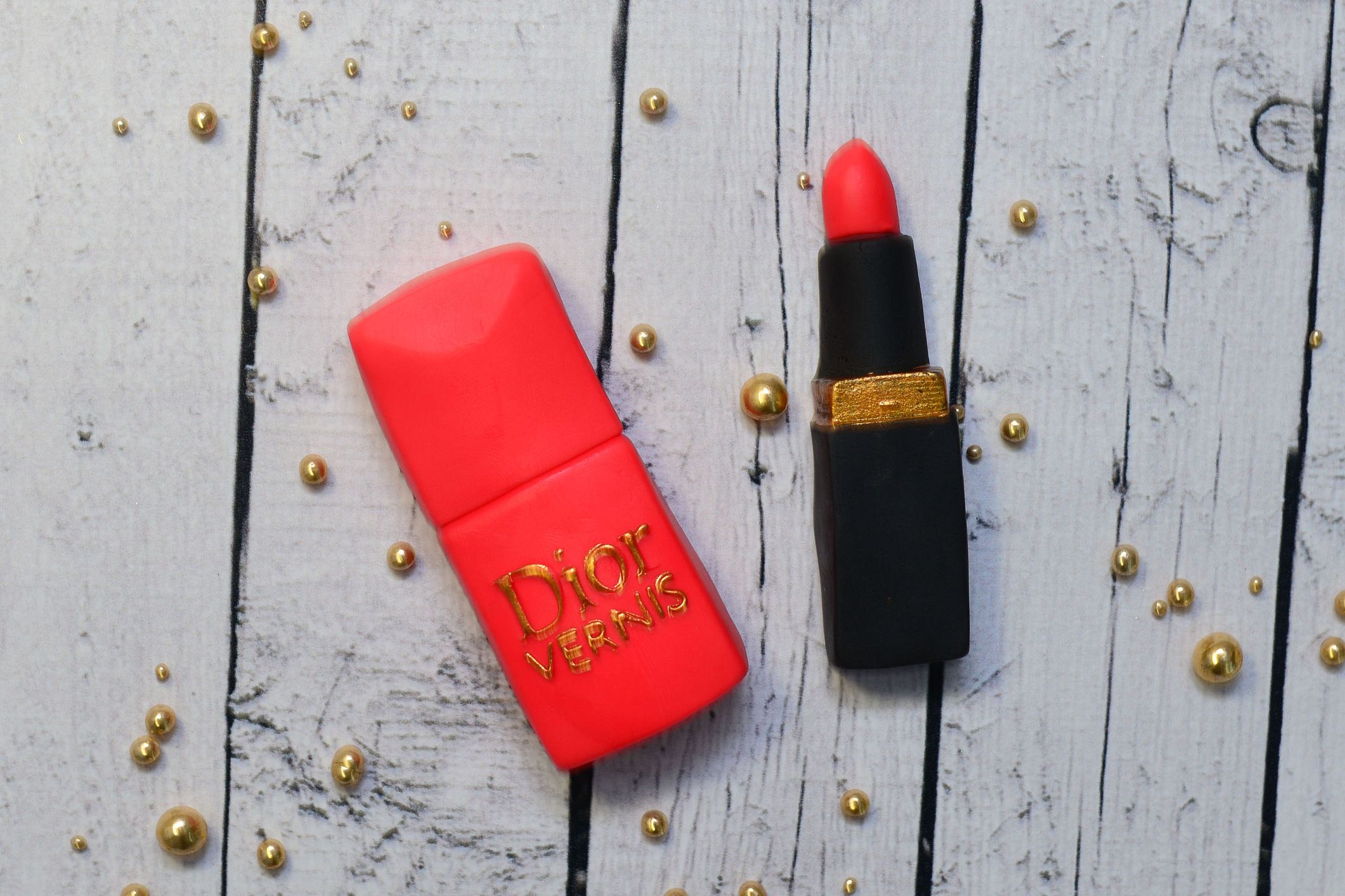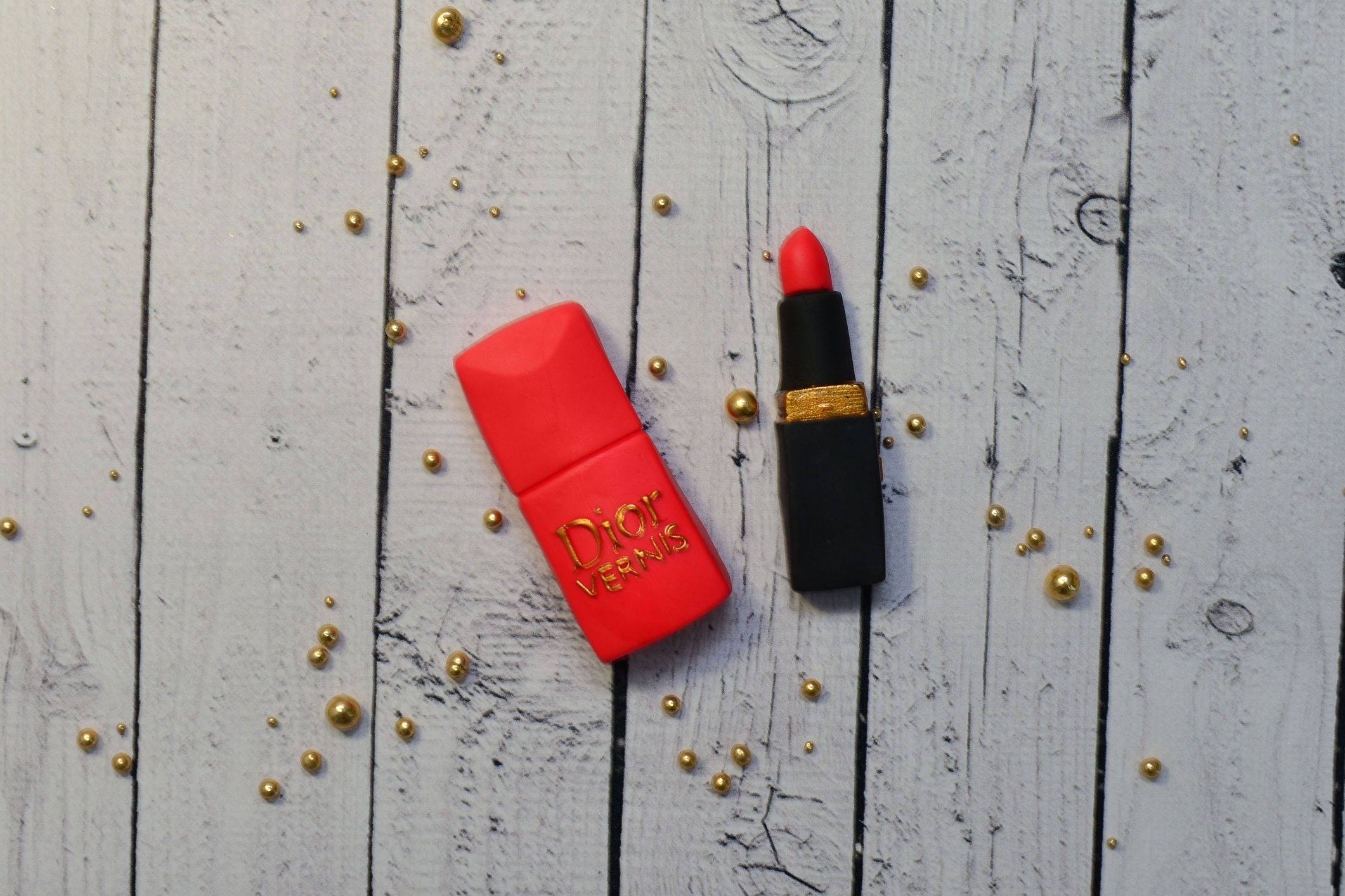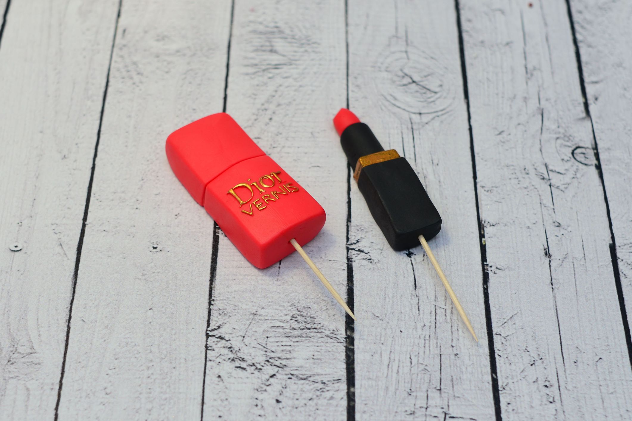 Zestaw z masy cukrowej, szminka i lakier w kolorze czerwonym