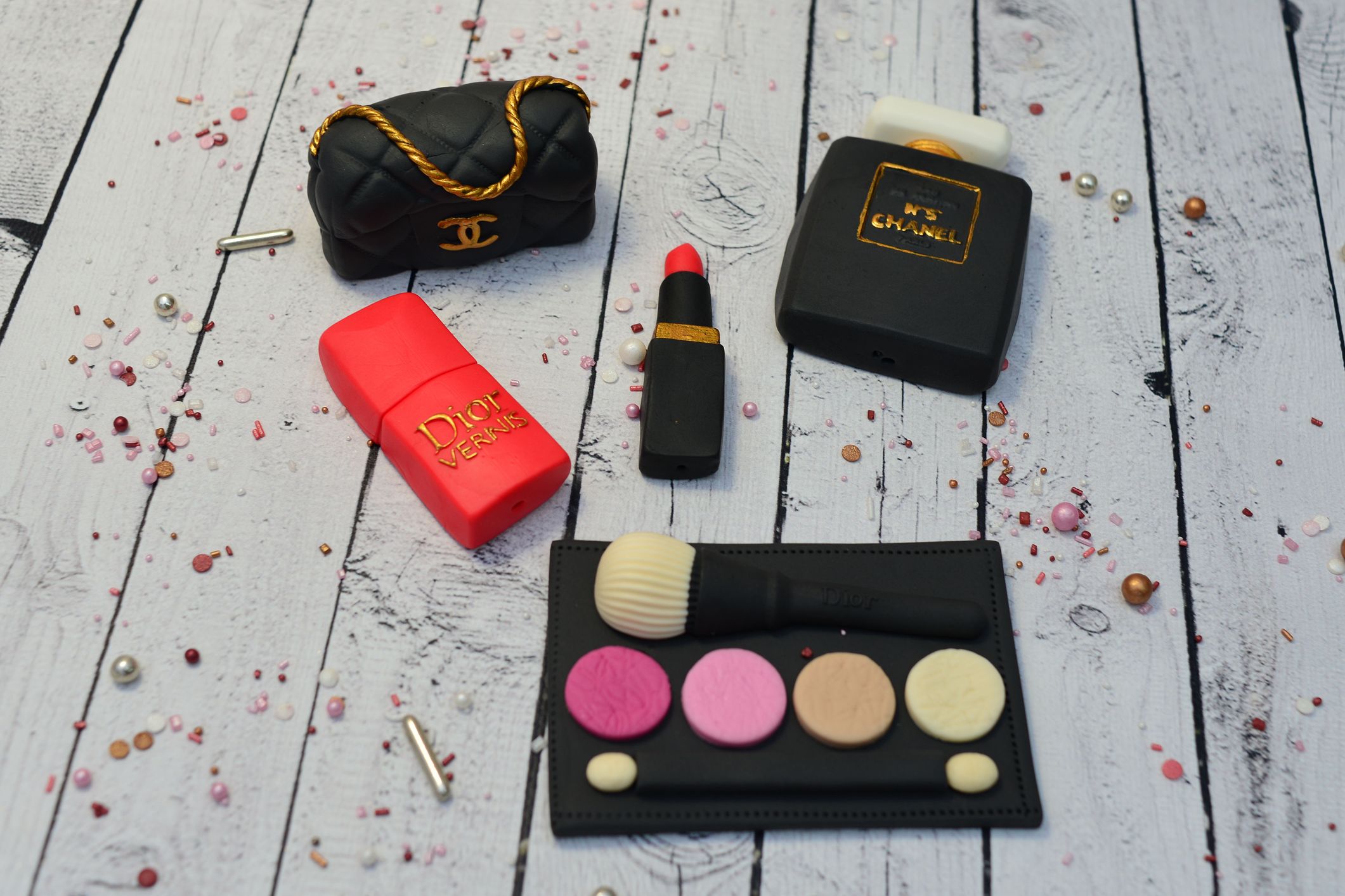 Zestaw dekoracji z masy cukrowej, czerwona szminka i lakier to idealna dekoracja tortu. Złote detale nadadzą Twoim wypiekom klasy i elegancji.