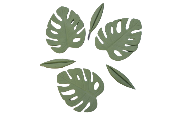 - 3 szt. liści monstery w ciemnym zielonym kolorze, wymiary listka: 6,5 cm x 5 cm