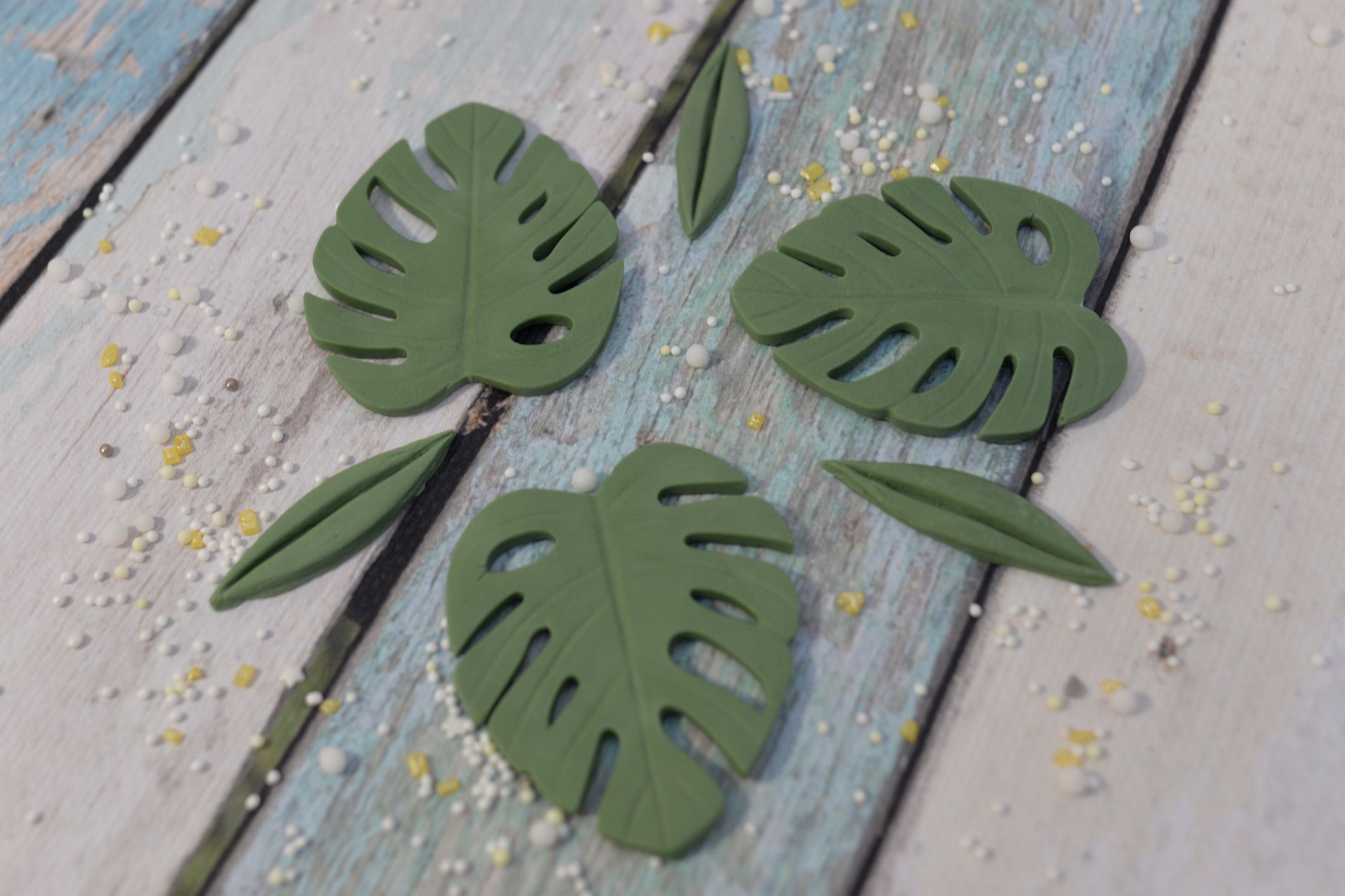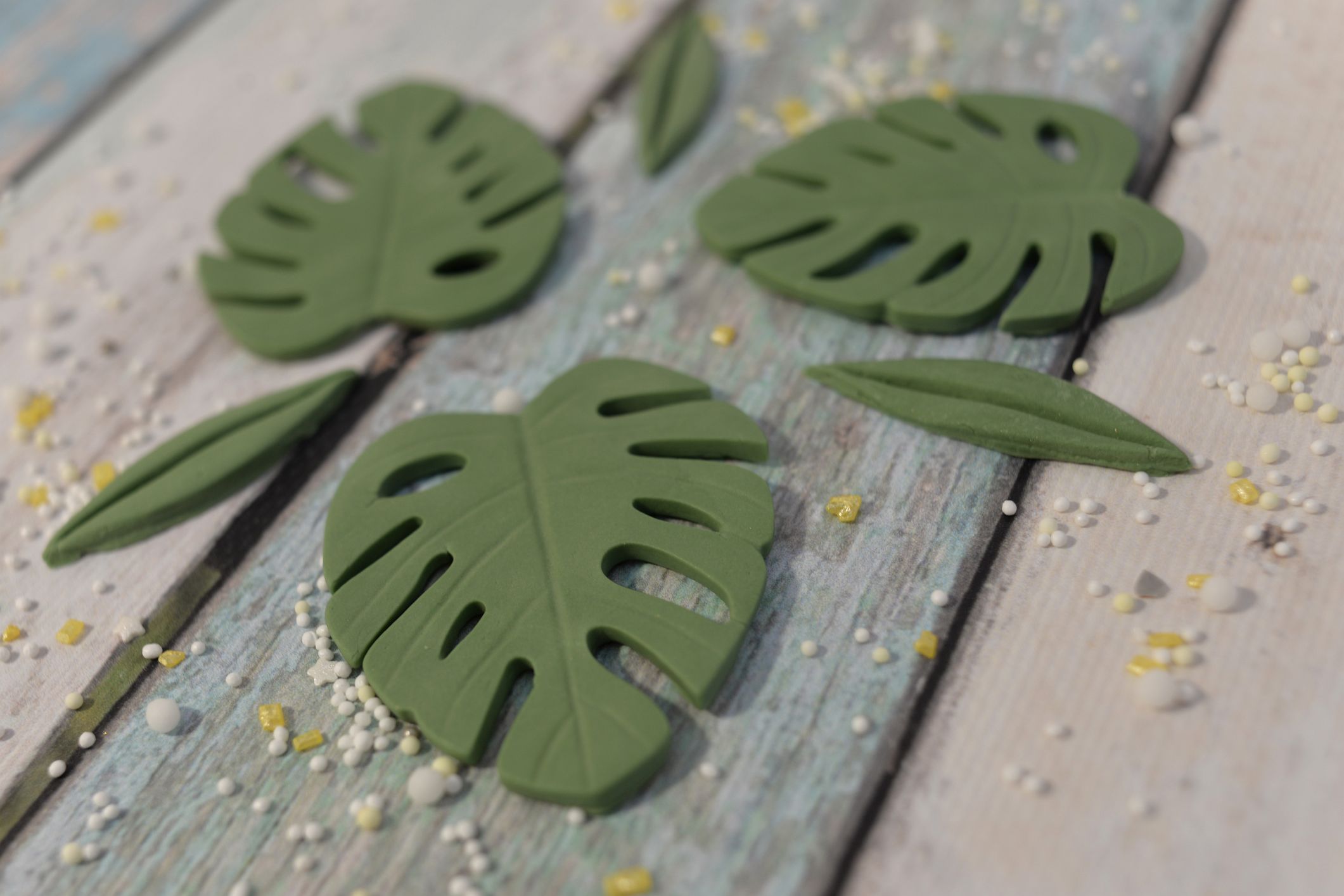 Liście w całości wykonane z masy cukrowej, idealne pasują do np. tortu w stylu safari jak i wielu innych tematycznych tortów.