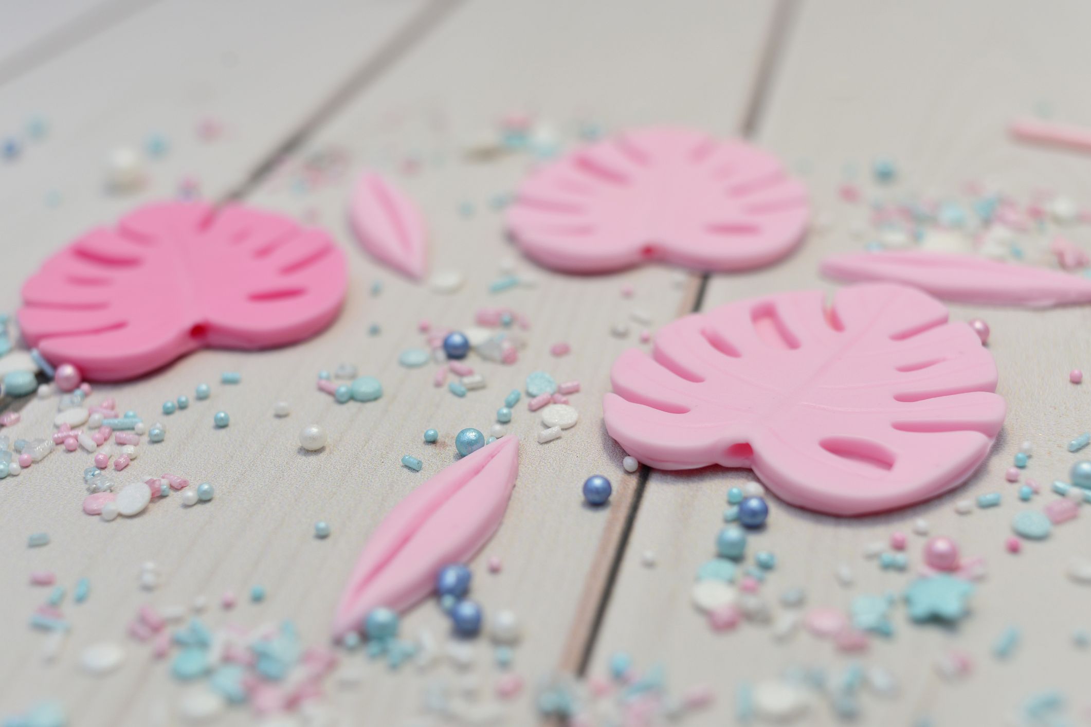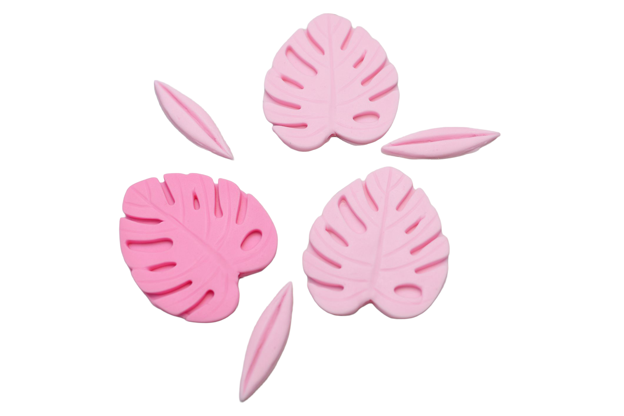 • 3 szt. liści monstery w dwóch odcieniach różu, wymiary listka: 6,5 cm x 5 cm