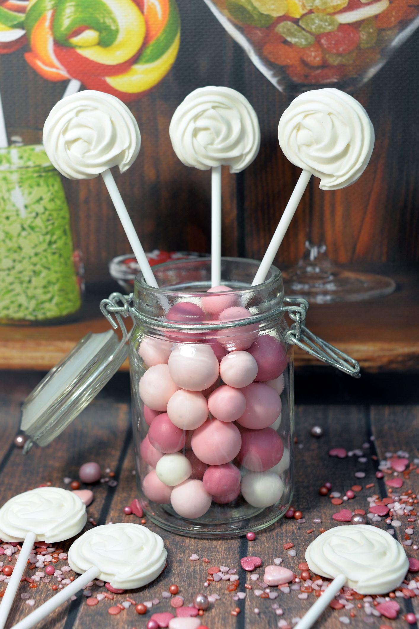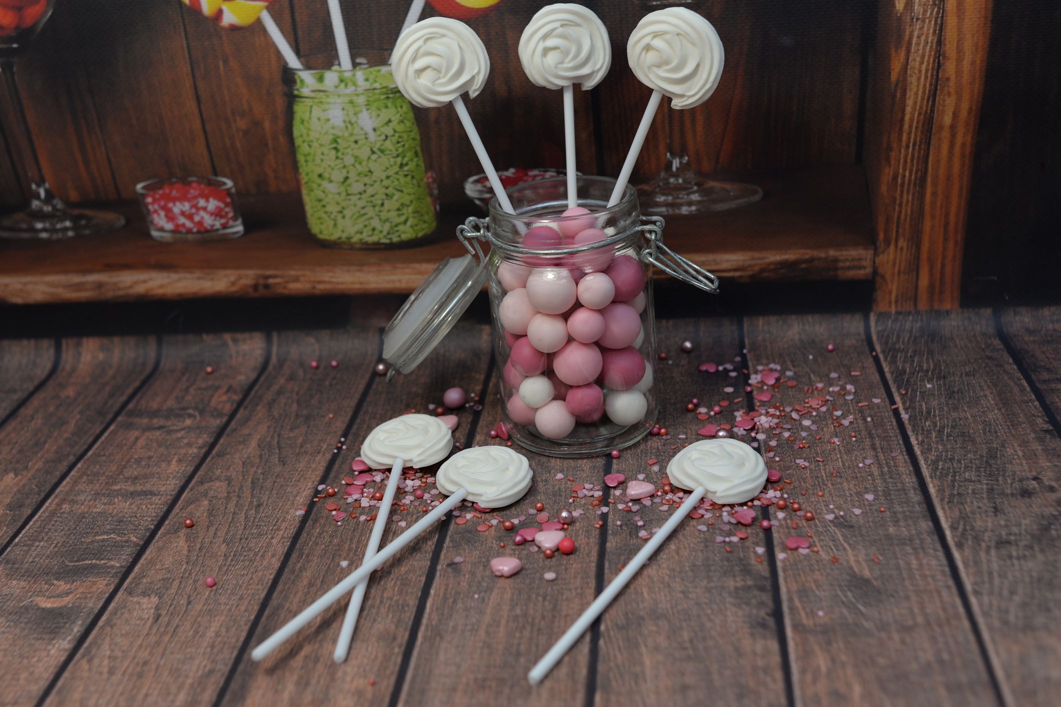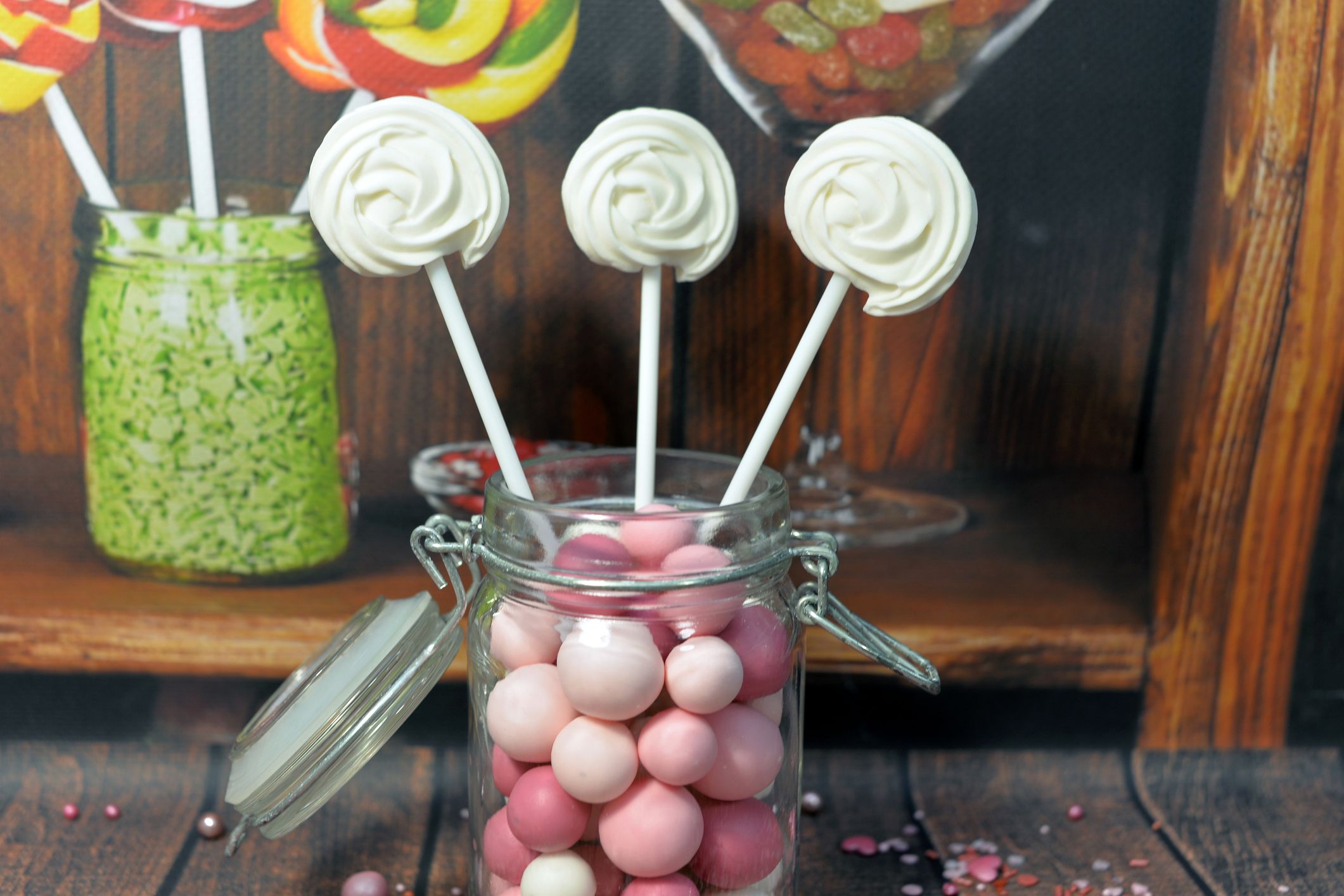 Mamy dla Ciebie wyjątkową propozycję! Lizaki bezowe wykonane z masy cukrowej zamocowane na patyczkach.