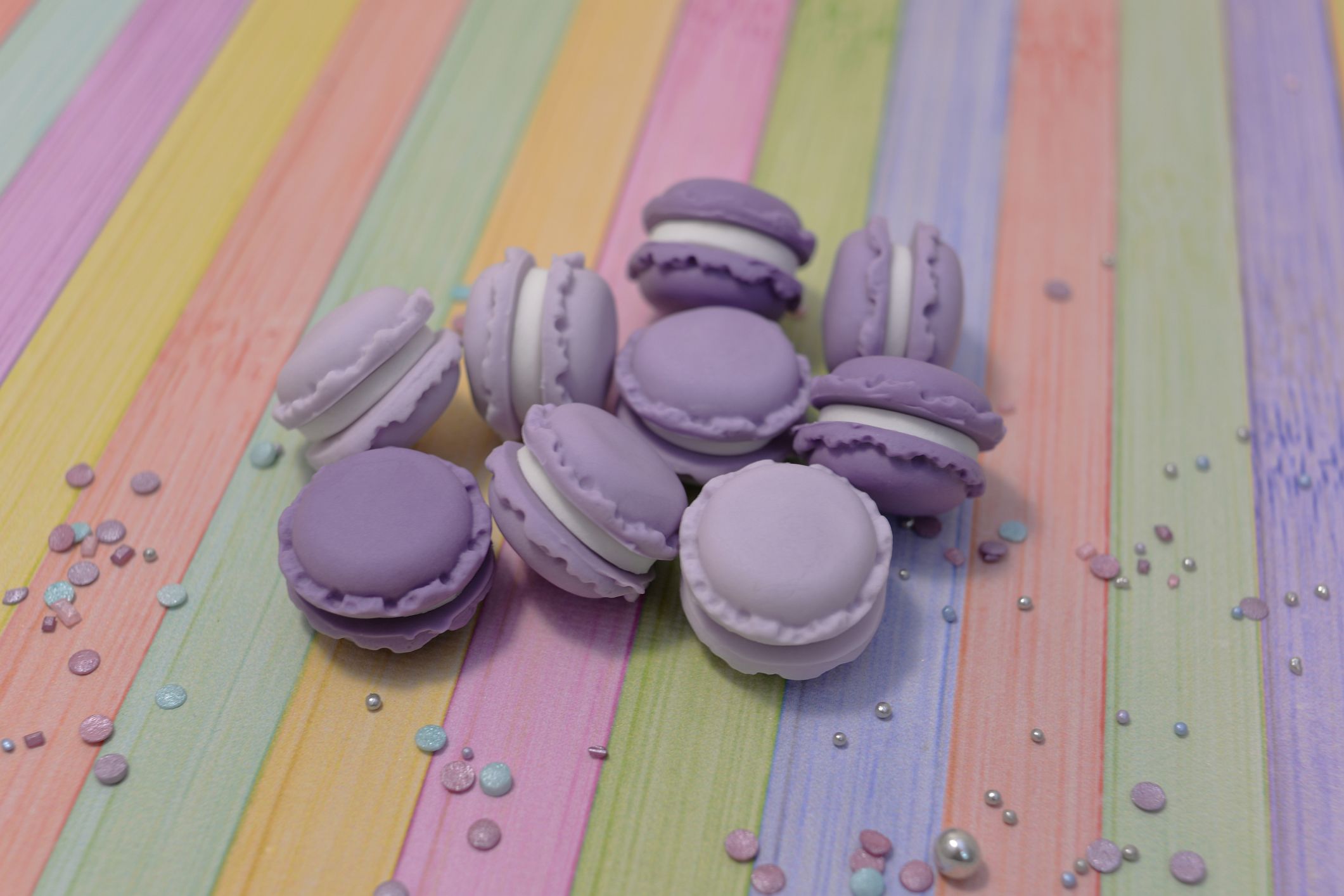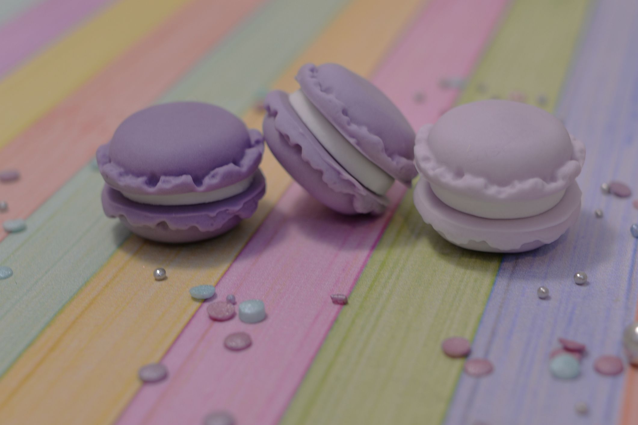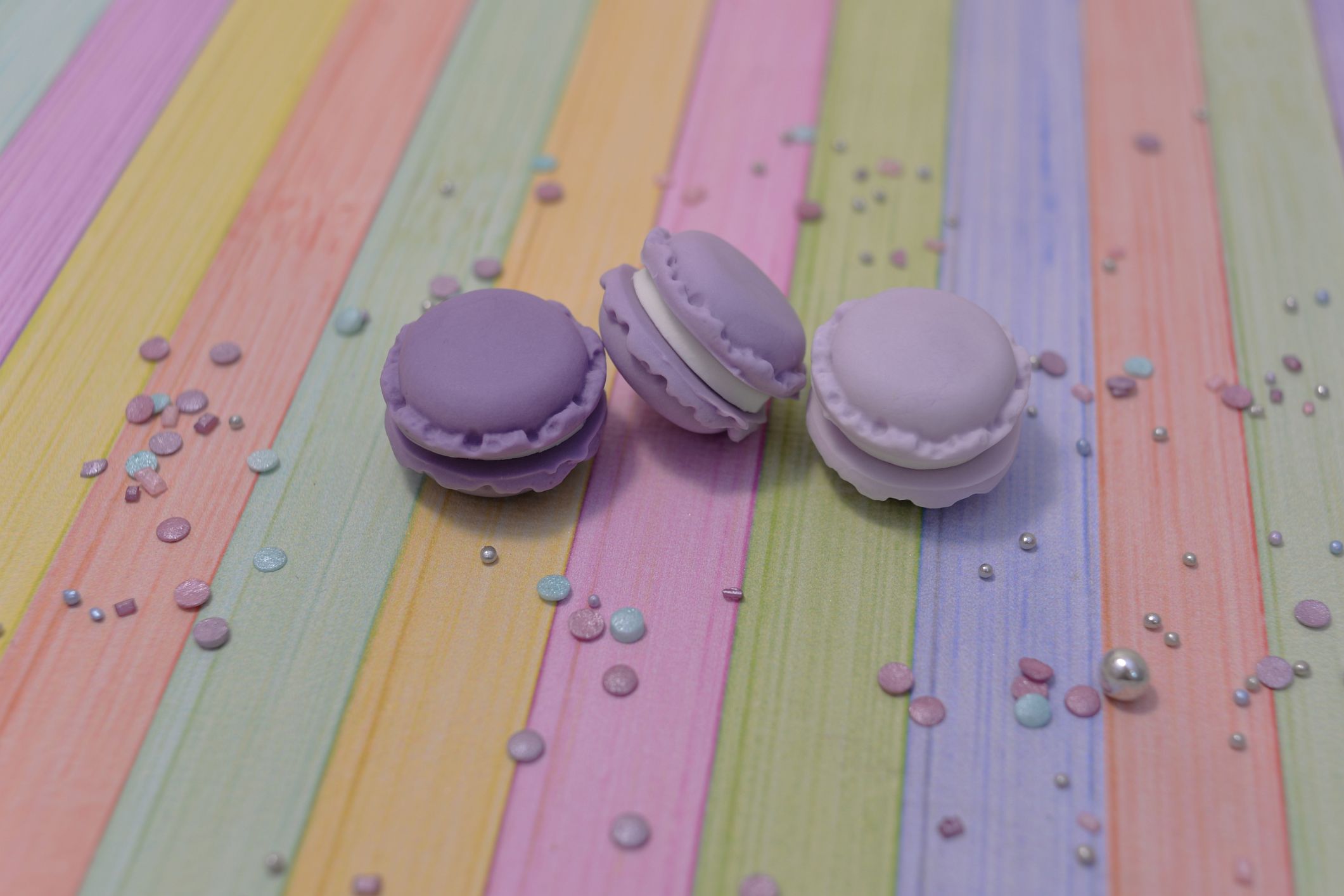 Prezentujemy Ci trzy wyjątkowe sztuki makaroników wykonanych w całości z masy cukrowej w trzech odcieniach fioletu. To drobne, ale niezwykle urocze dekoracje, które dodadzą wyjątkowego uroku Twoim słodkim kreacjom.