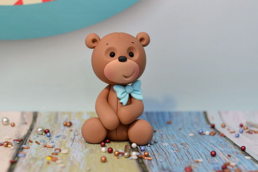 Figurka brązowego Misia z niebieską kokardką