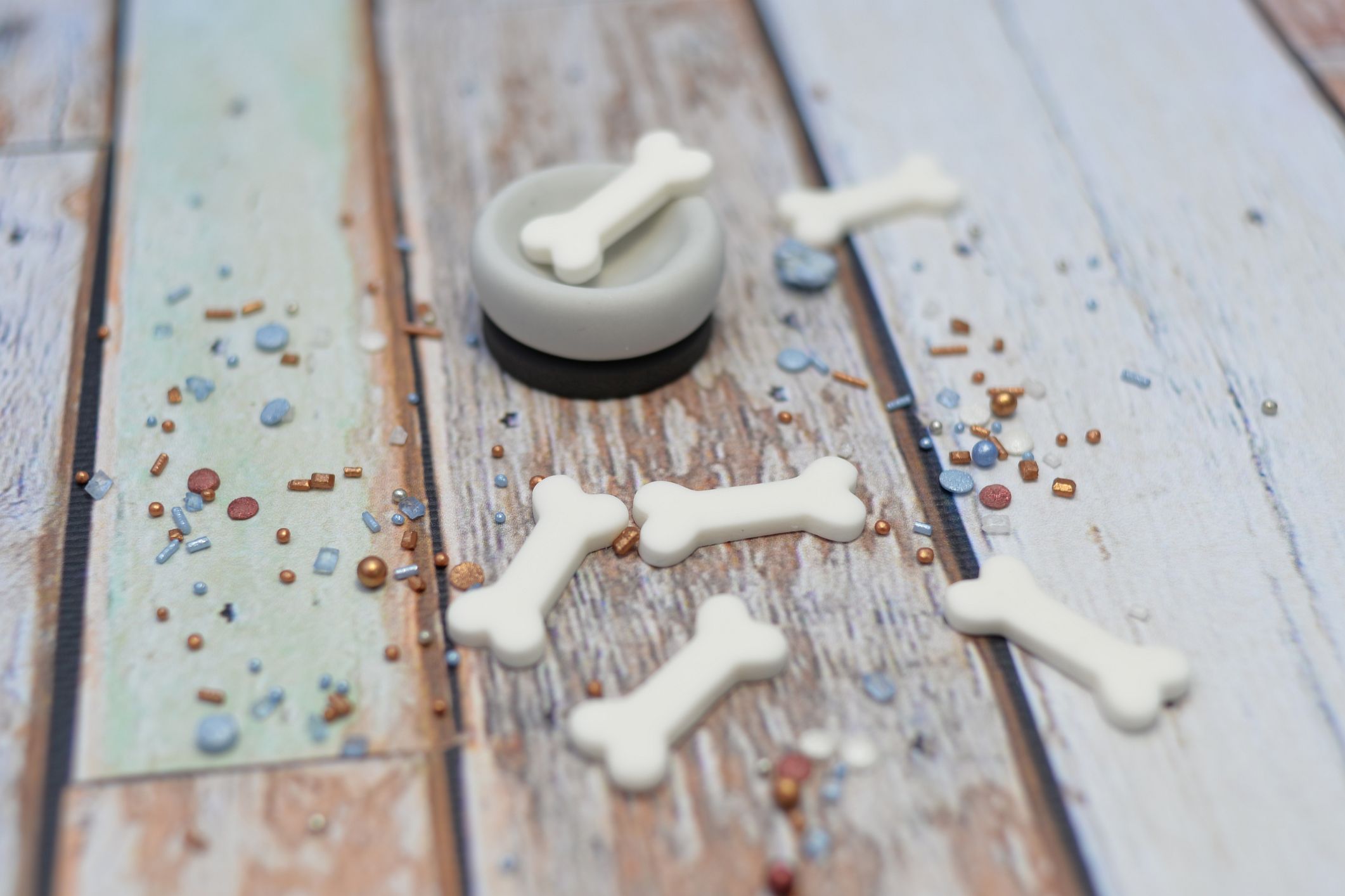 Zestaw 6 szt cukrowych kości i cukrowa miseczka