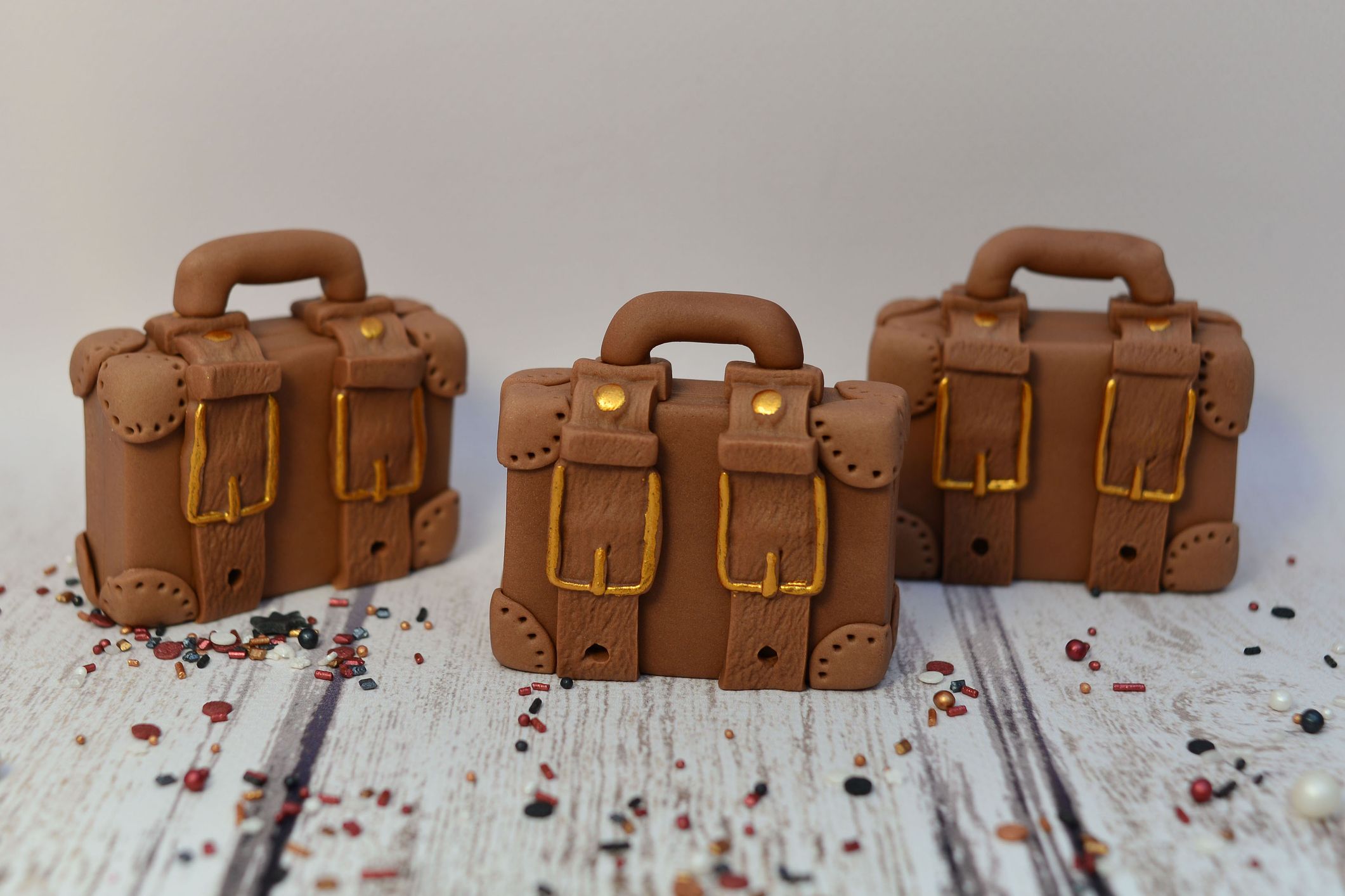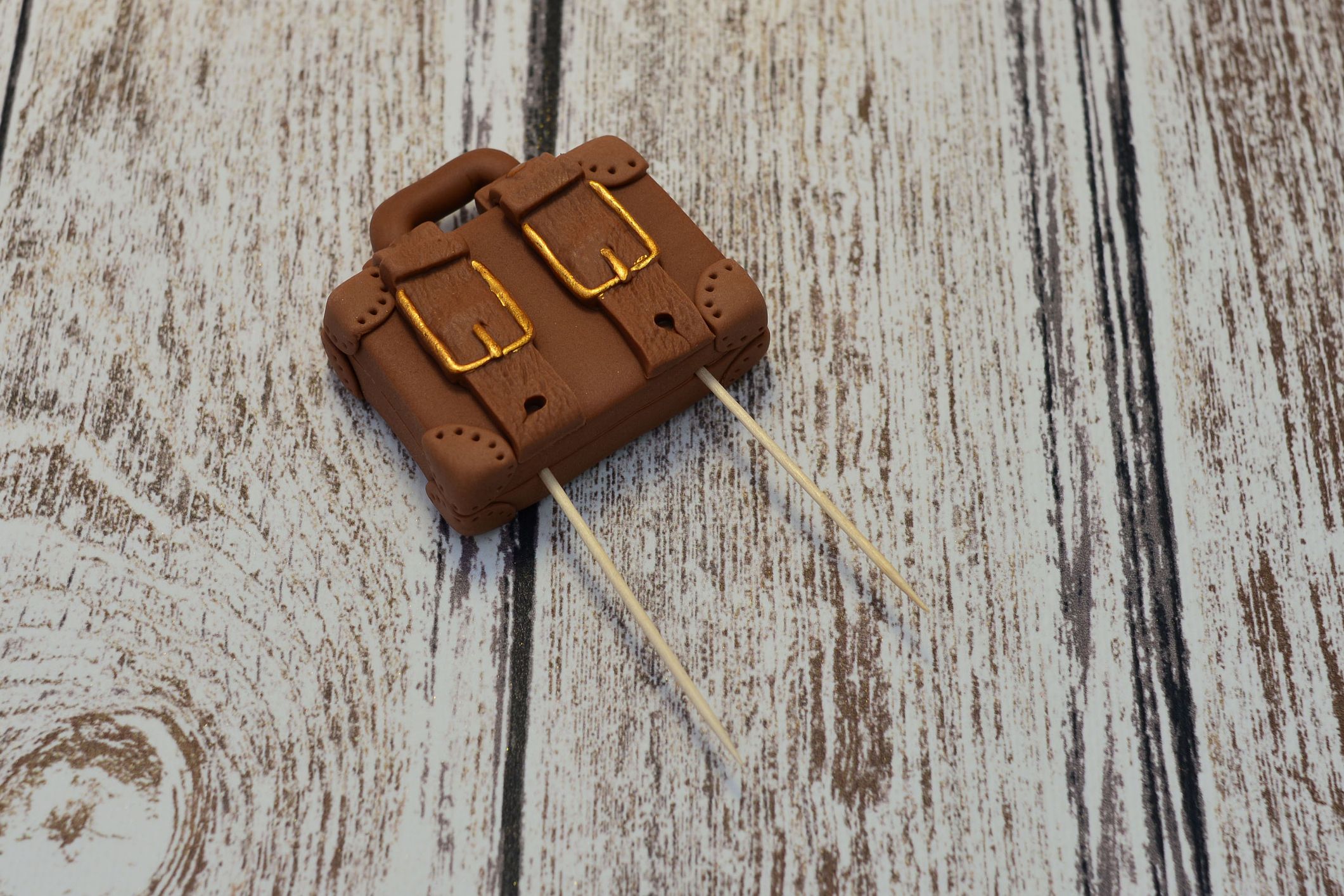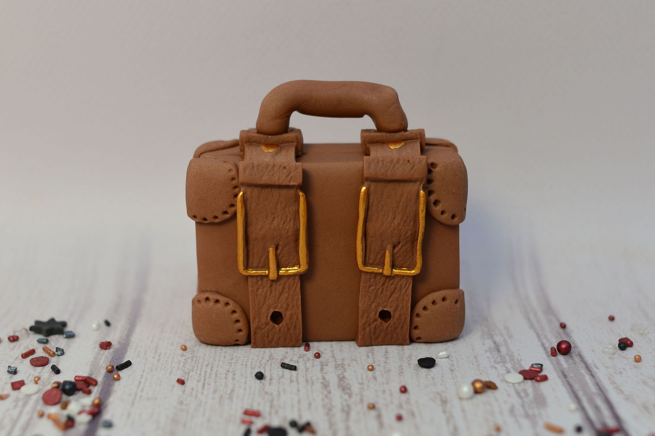 Walizka z masy cukrowej w kolorze brązowym