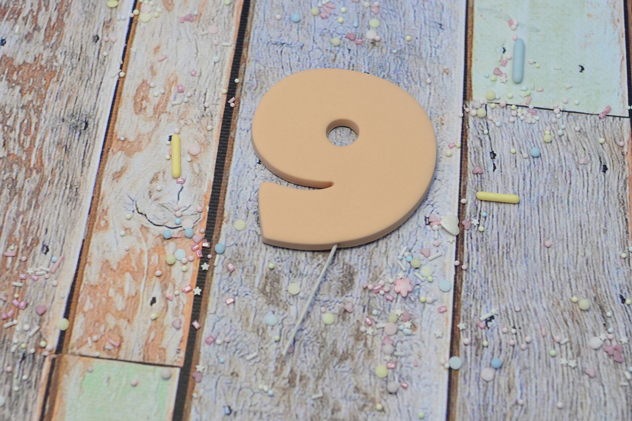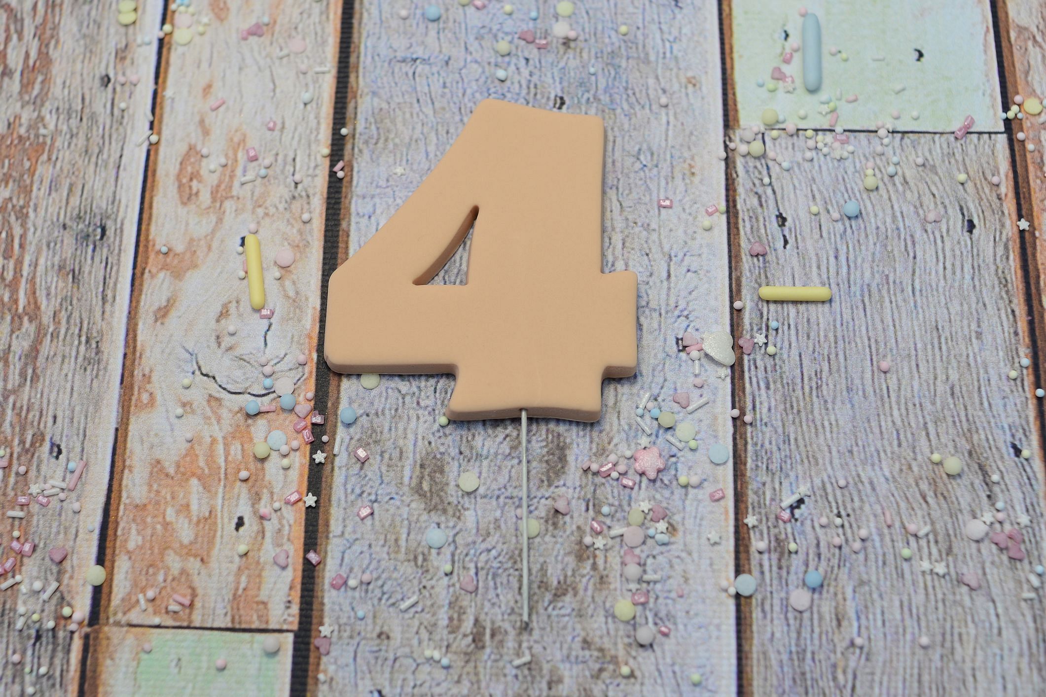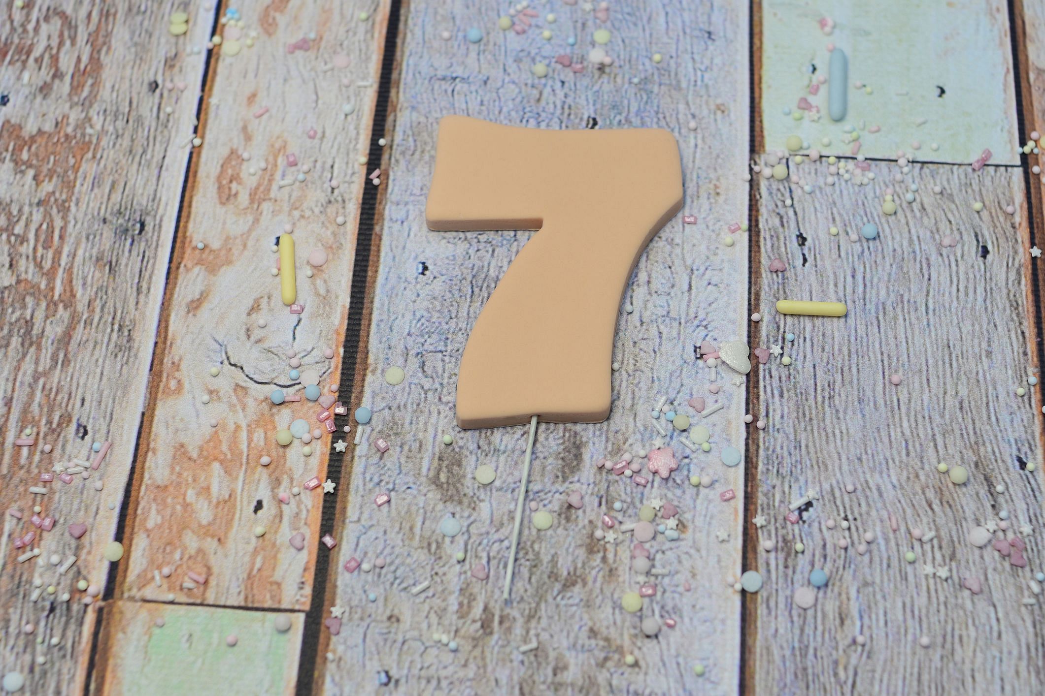 Cyfry wykonane są w całości z masy cukrowej, zamocowane na drewnianej wykałaczce.