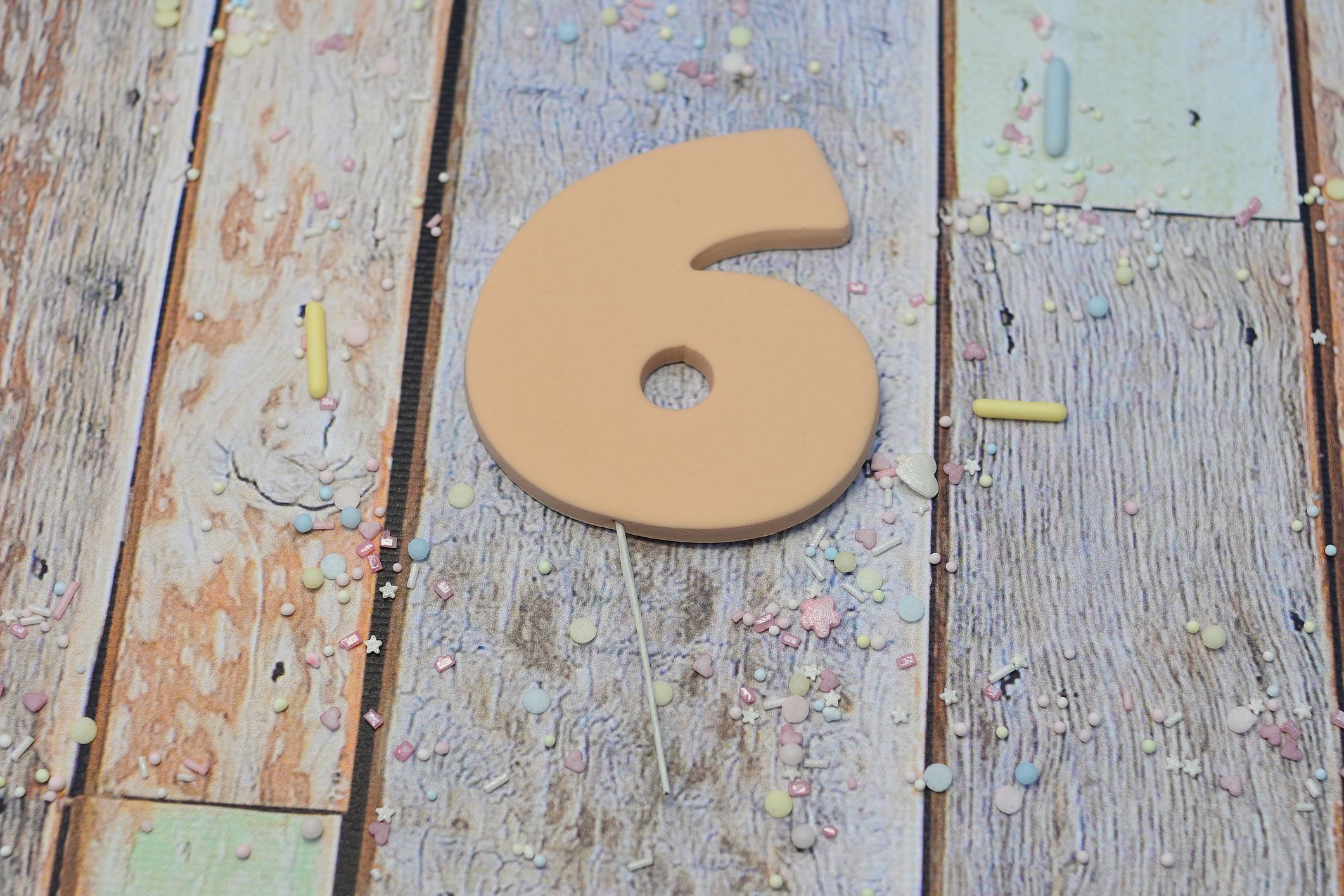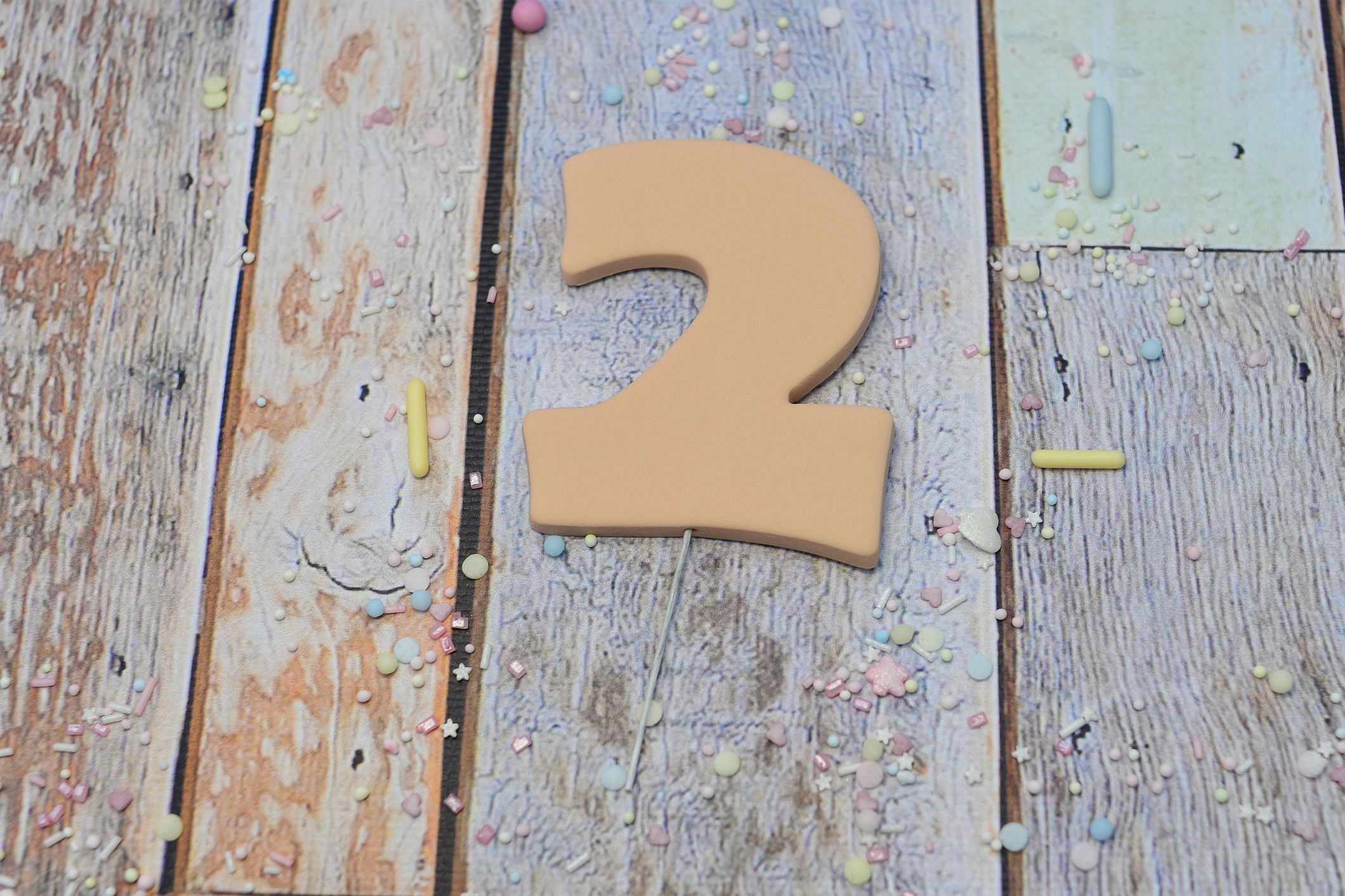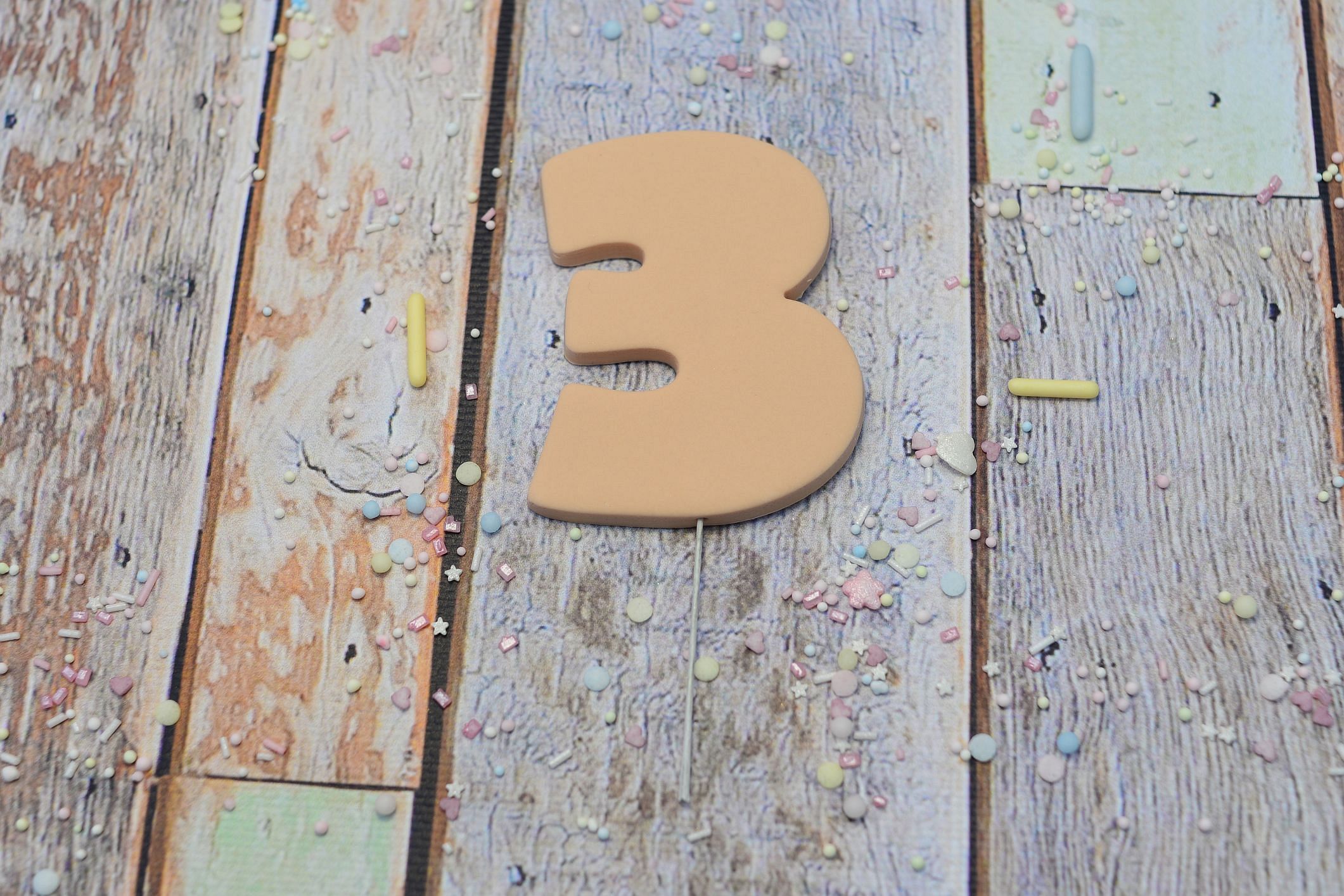 Cyfry wykonane są w całości z masy cukrowej, zamocowane na drewnianej wykałaczce.