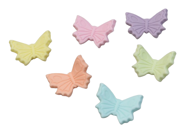 Motylki wykonane w 6 różnych pastelowych kolorach, z lekko uniesionymi skrzydełkami i pięknym wzorem.