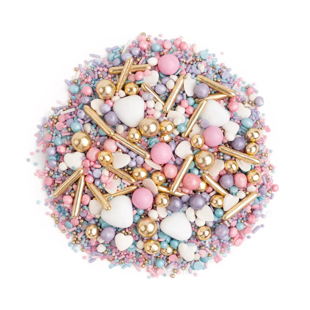 UNICORN, czyli prawdziwa klasyka wśród słodkości dla dzieci. Twój tort jednorożec zasługuje na prawdziwy perłowy połysk, który zapewni mu właśnie ta mieszanka! Piękne połączenie różu, fioletu i turkusu będzie bajkowym zwieńczeniem dla wszystkich Twoich deserów! Sprawdzi się idealnie nie tylko na torcie, ale także na donutach, cake popsach i wszelkich słodkościach przygotowanych z myślą o małych marzycielach. ✨