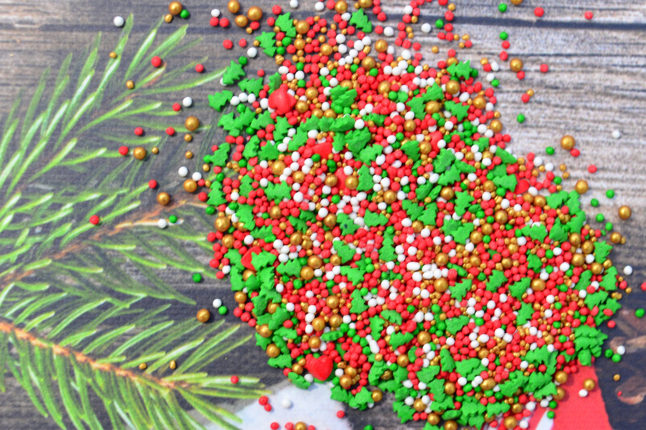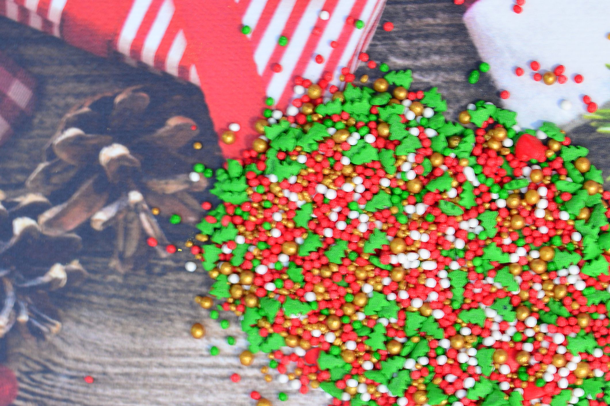 Posypka Cukrowa, Choinki, czerwone, złote, białe kuleczki, 30g