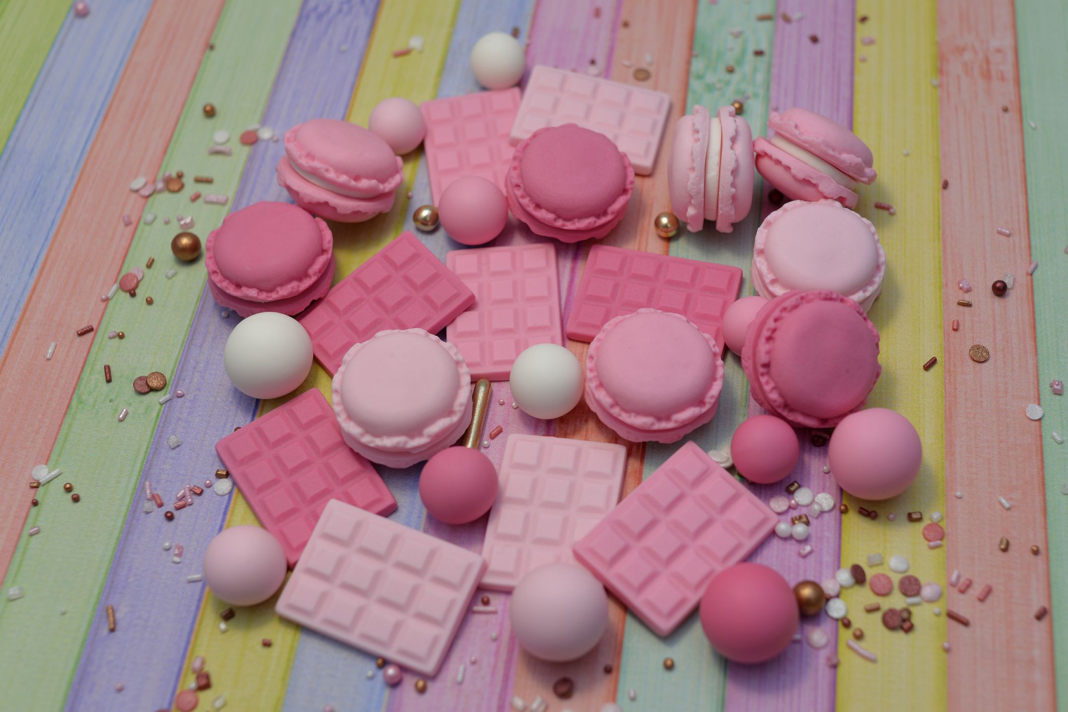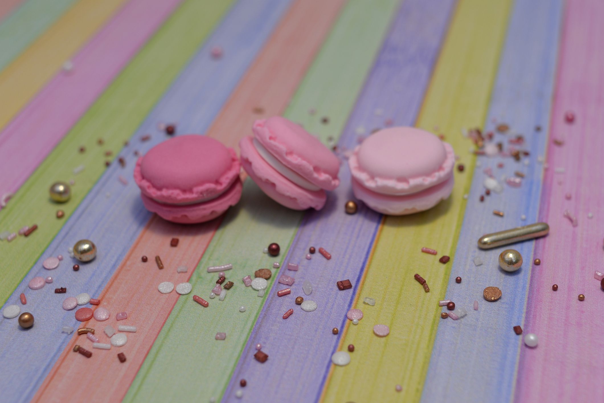 Prezentujemy Ci trzy wyjątkowe sztuki makaroników wykonanych w całości z masy cukrowej w trzech odcieniach różu. To drobne, ale niezwykle urocze dekoracje, które dodadzą wyjątkowego uroku Twoim słodkim kreacjom.