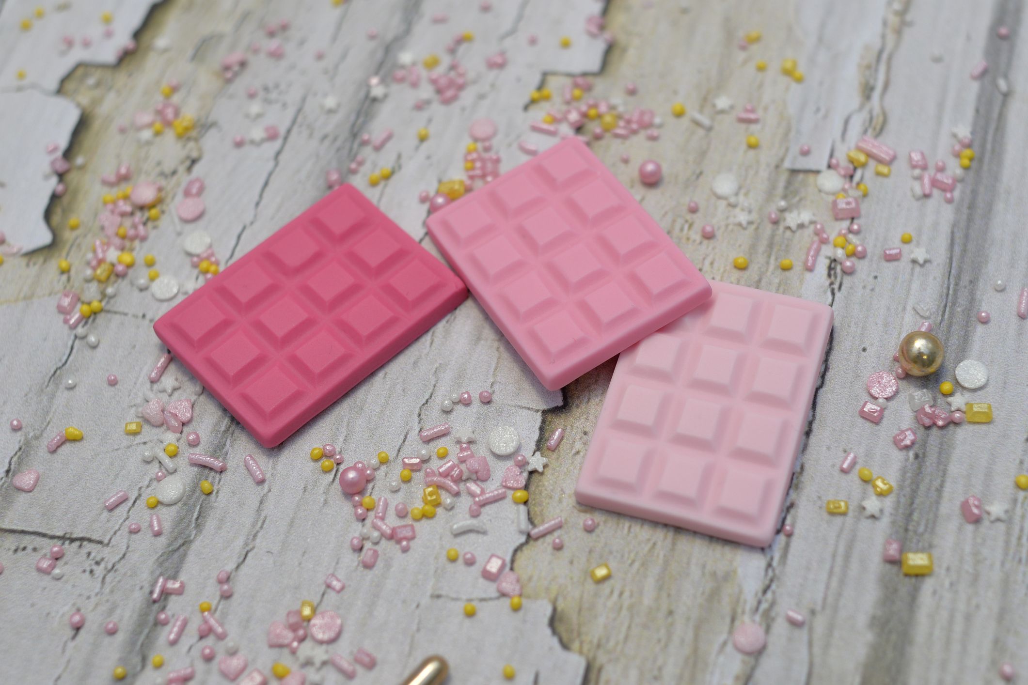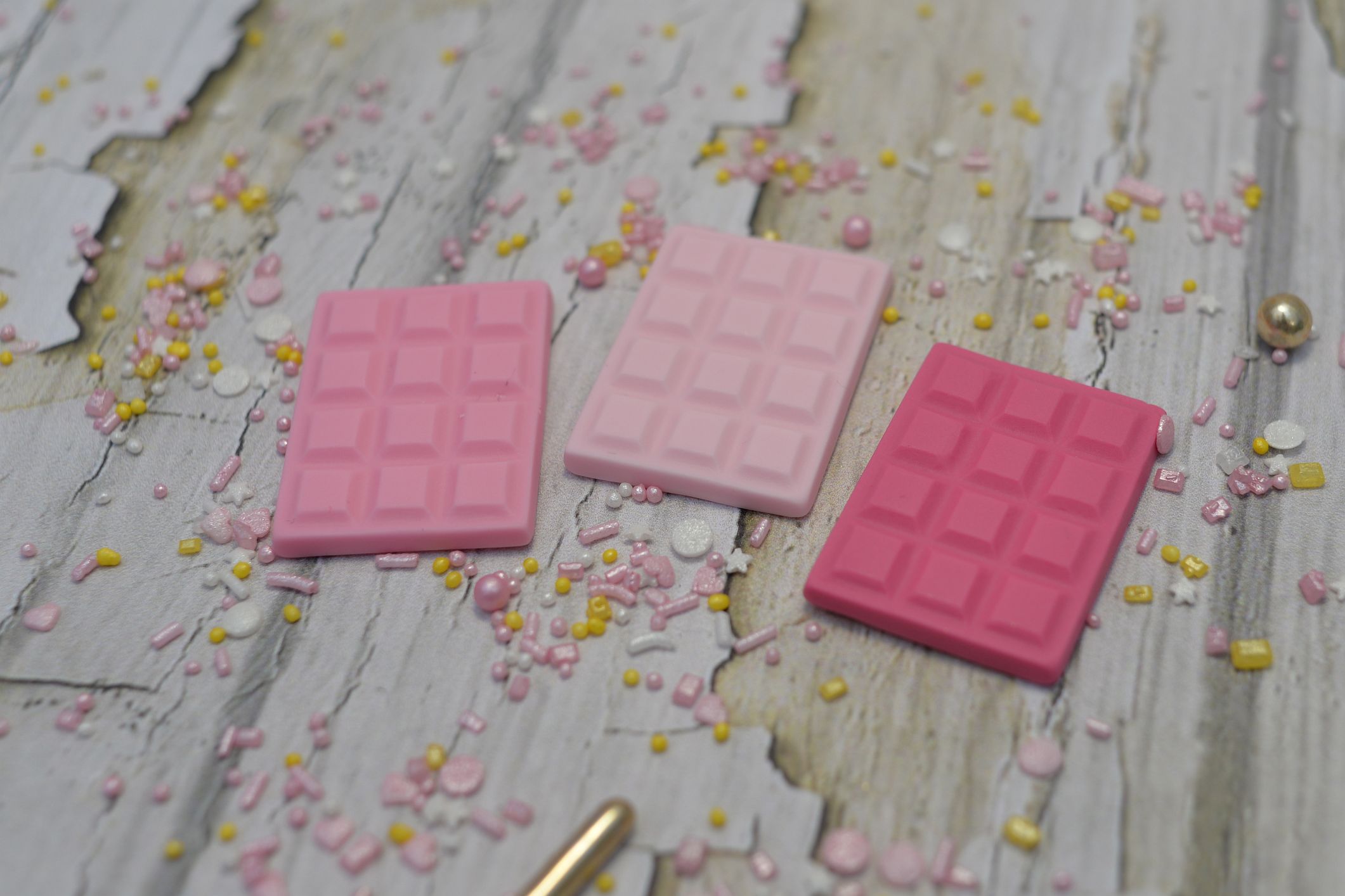 Przedstawiamy trzy wyjątkowe sztuki mini czekoladek wykonanych w całości z masy cukrowej w trzech odcieniach różu. To drobne, ale niezwykle urocze dekoracje, które dodadzą wyjątkowego uroku Twoim słodkim kreacjom.