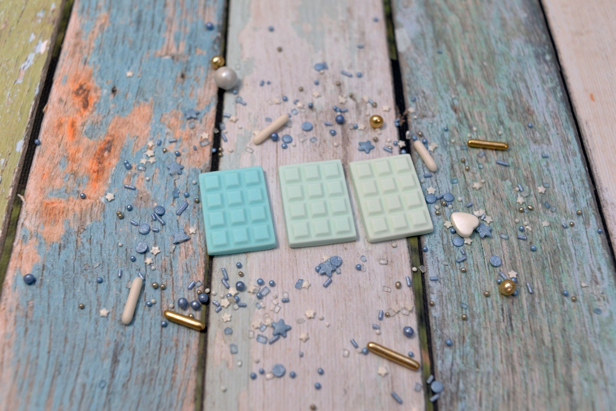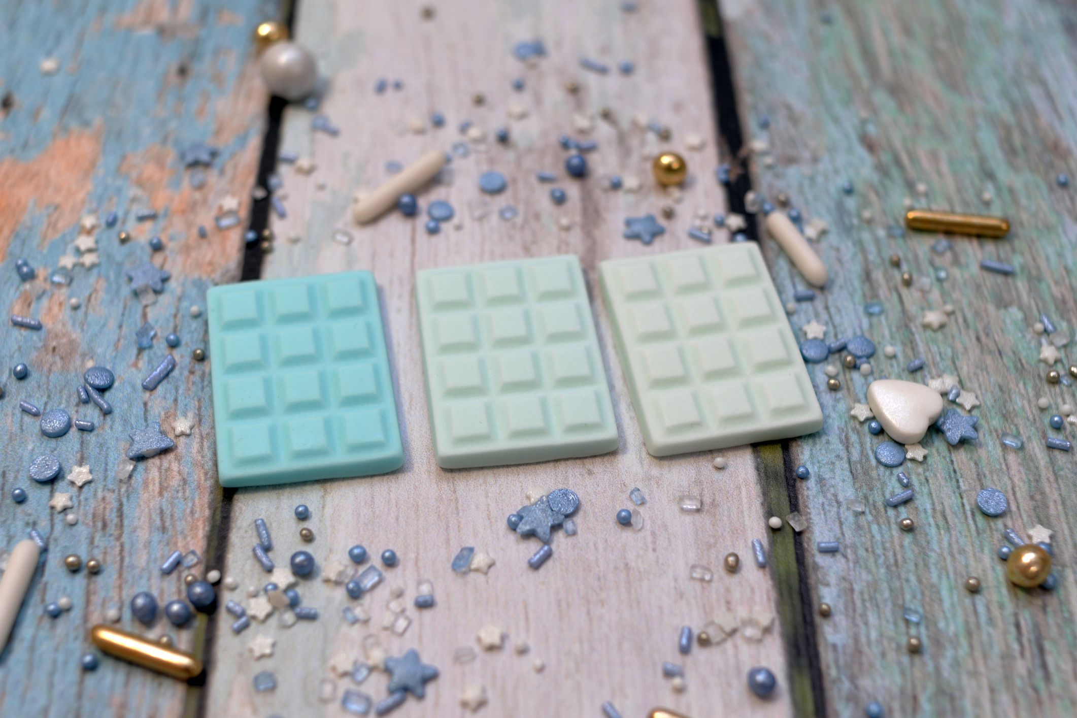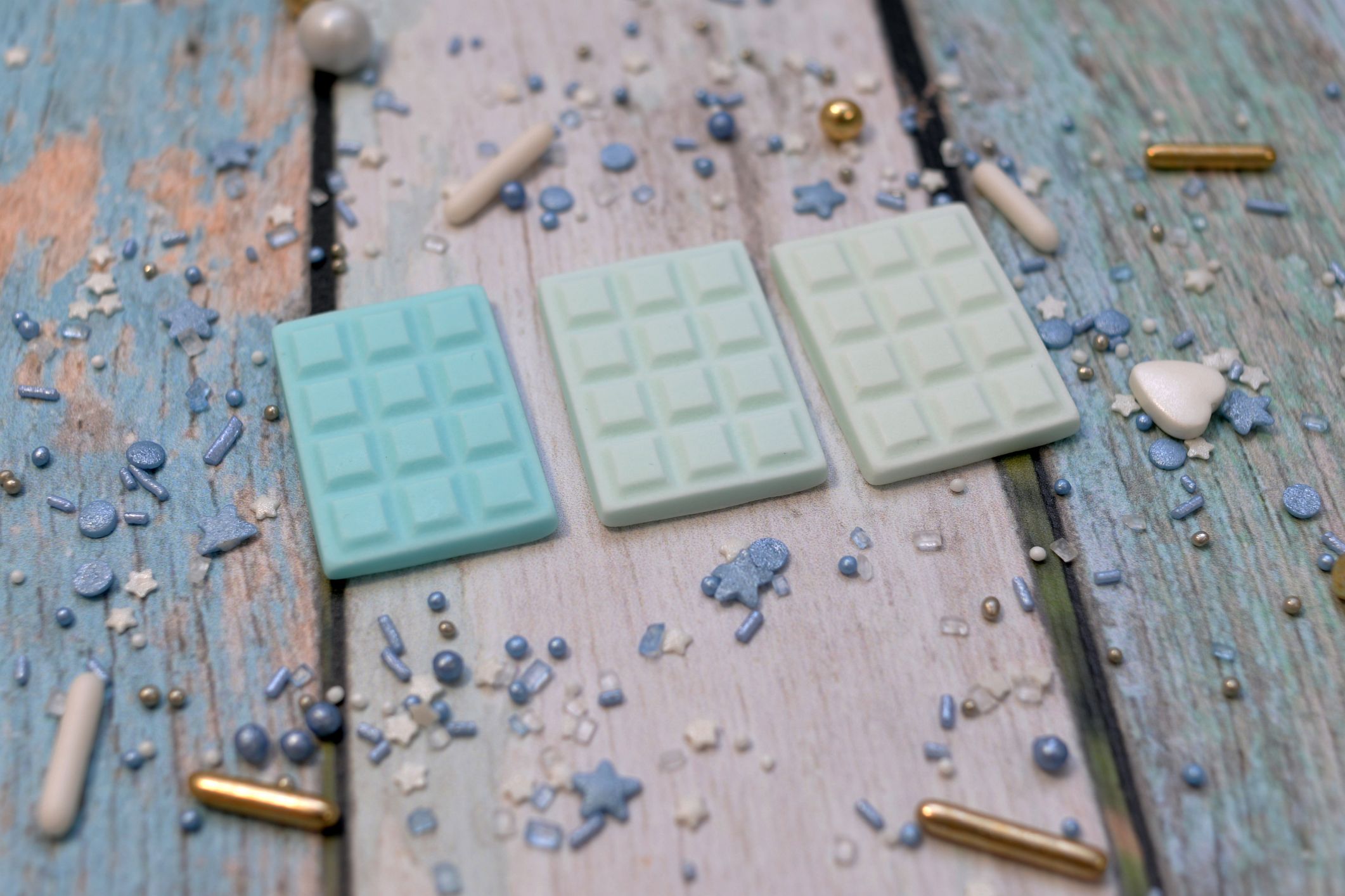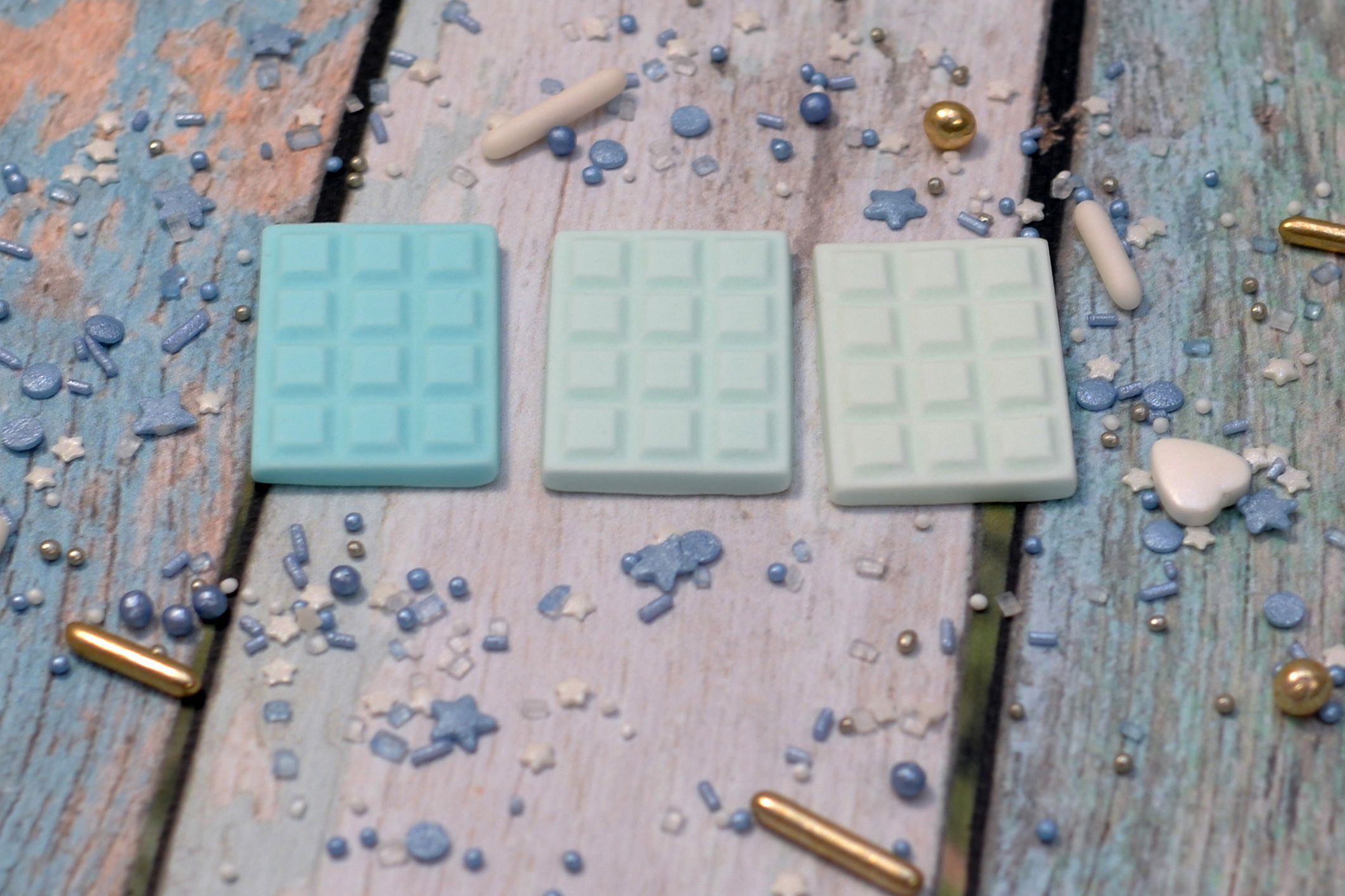 Zestaw 3 szt cukrowych mini czekoladek w odcieniach błękitu