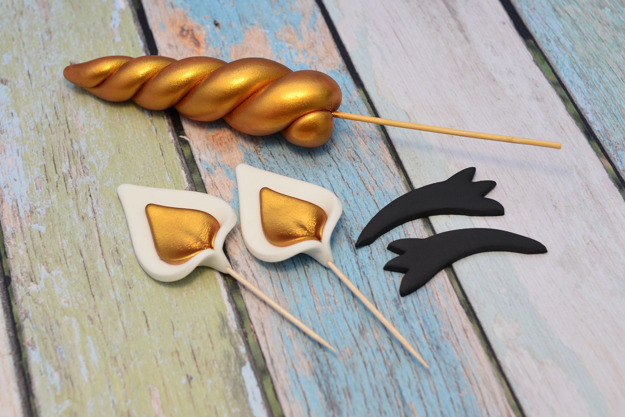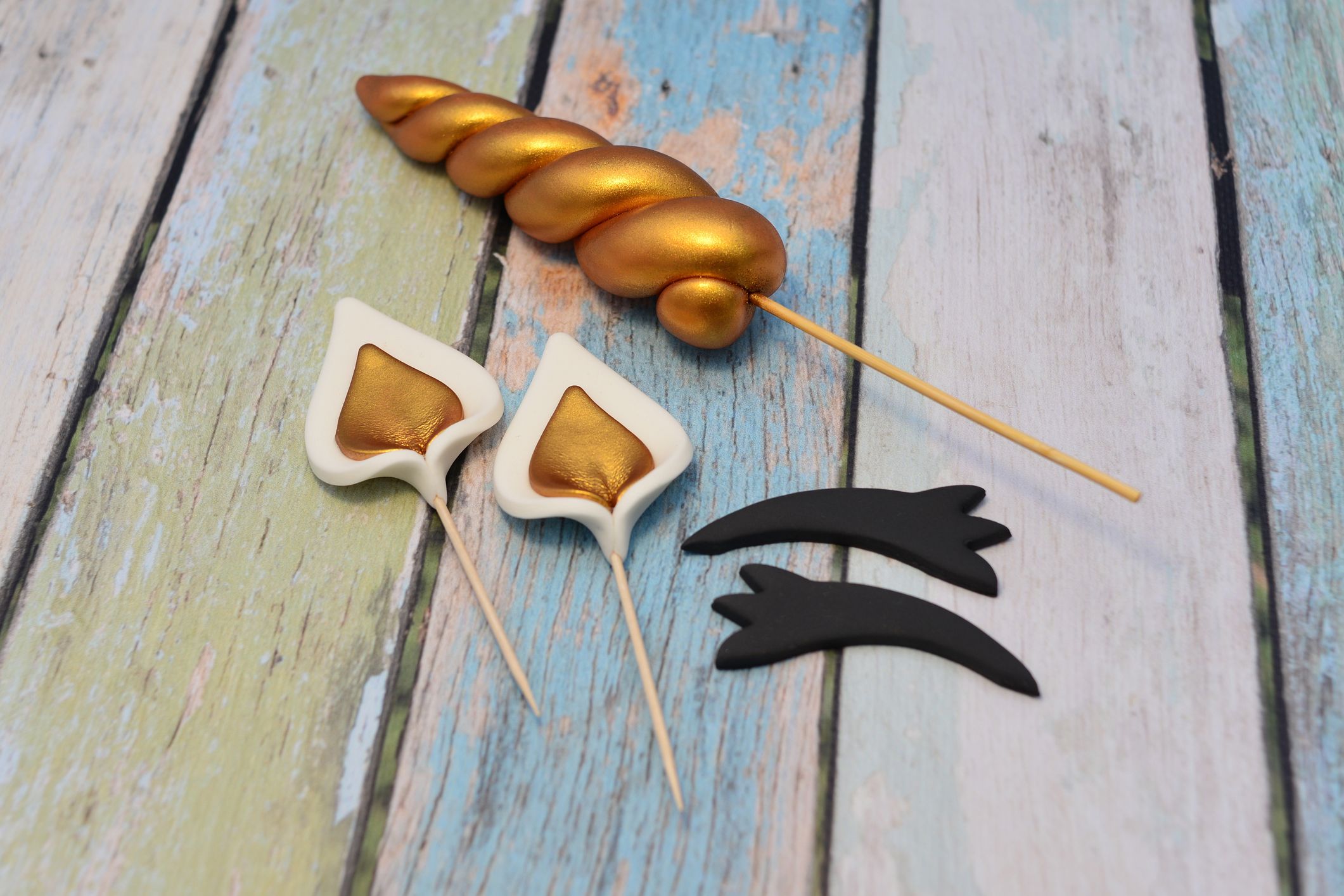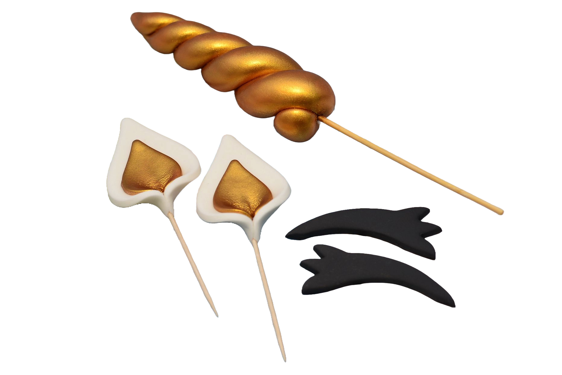 - Róg jednorożca w kolorze złota, wysokość około 12 cm (mierzone bez patyczka)