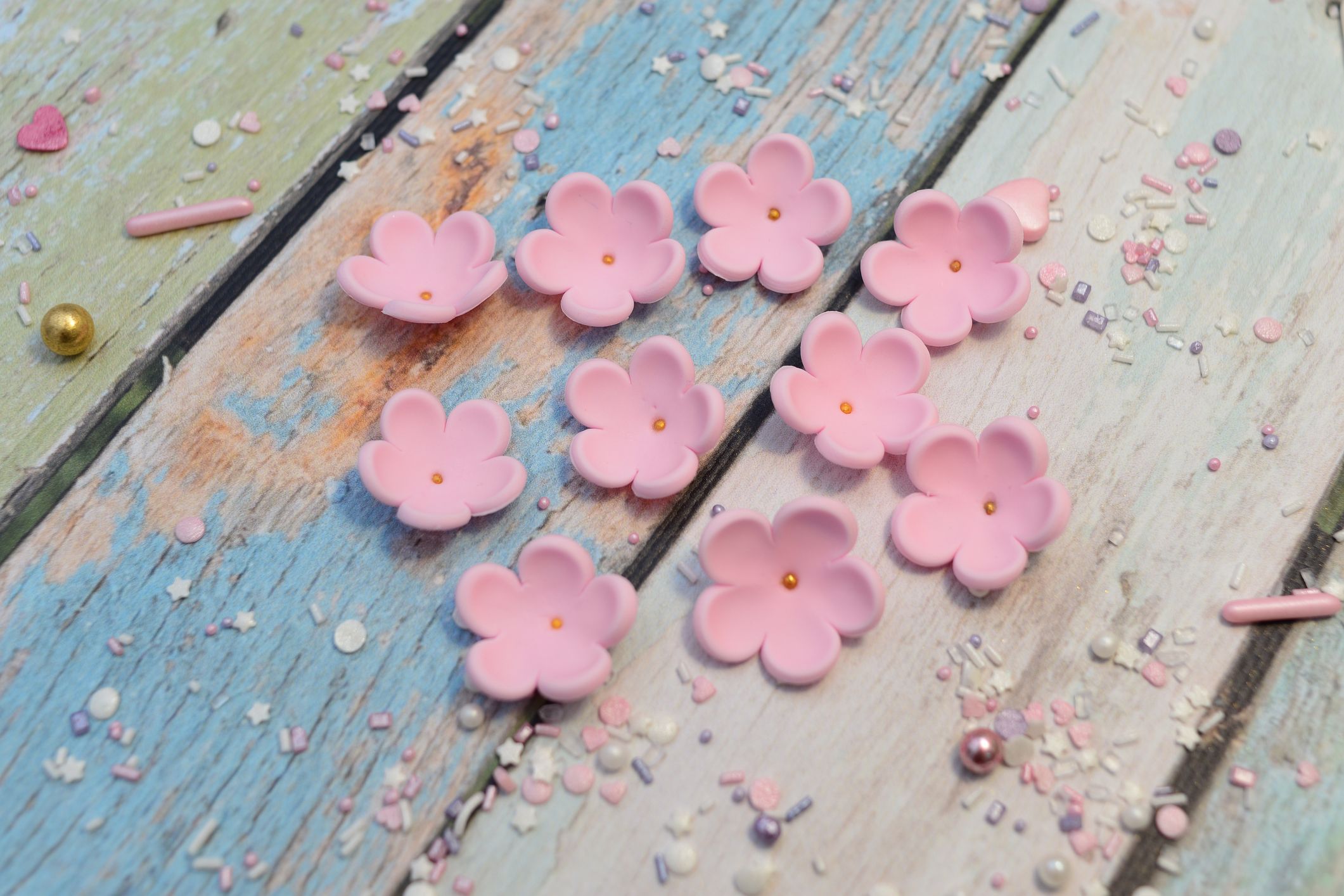 W zestawie znajduje się 10 sztuk kwiatuszków, które świetnie sprawdzą się zarówno jako główna dekoracja wypieku, jak i uzupełnienie większej kompozycji.