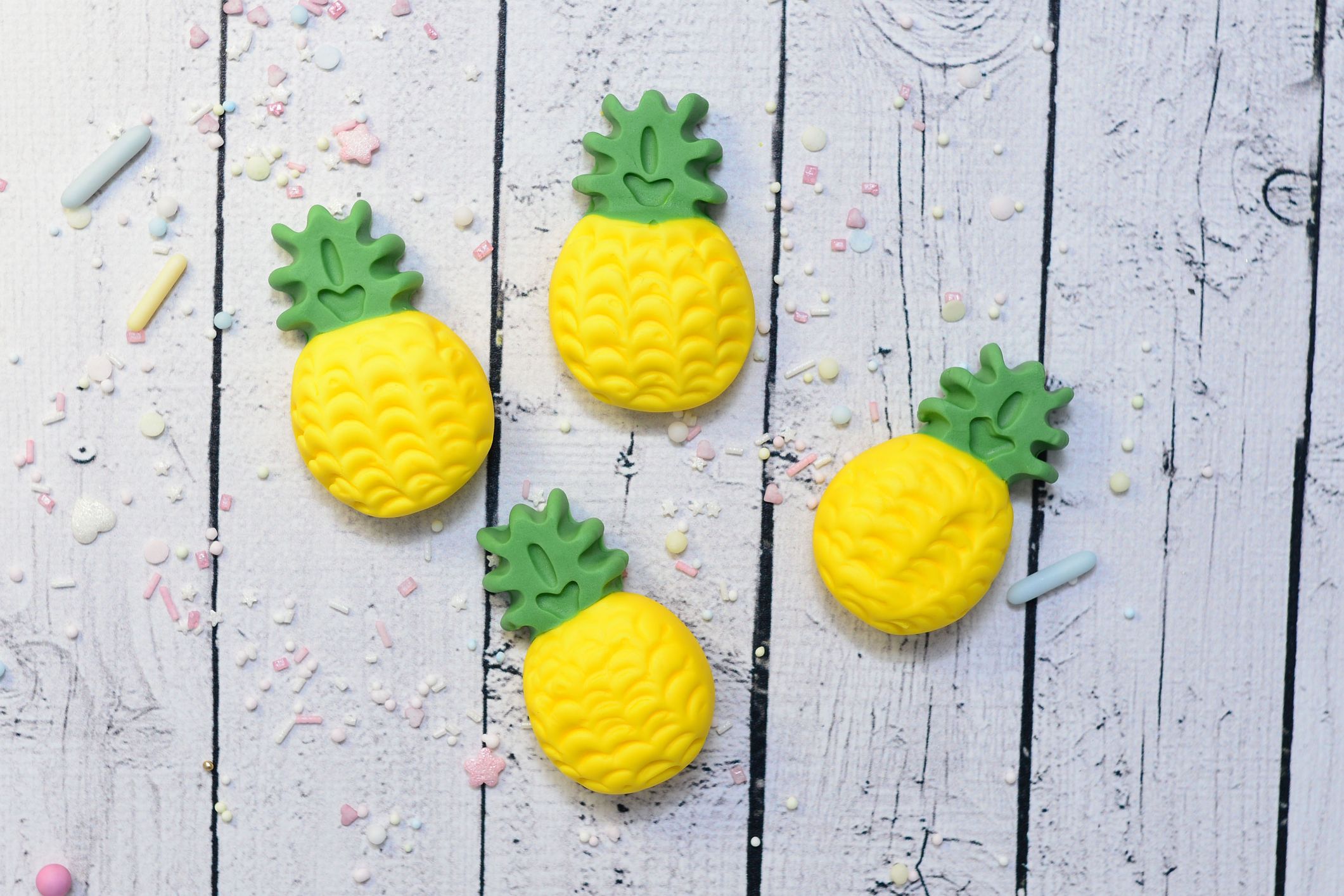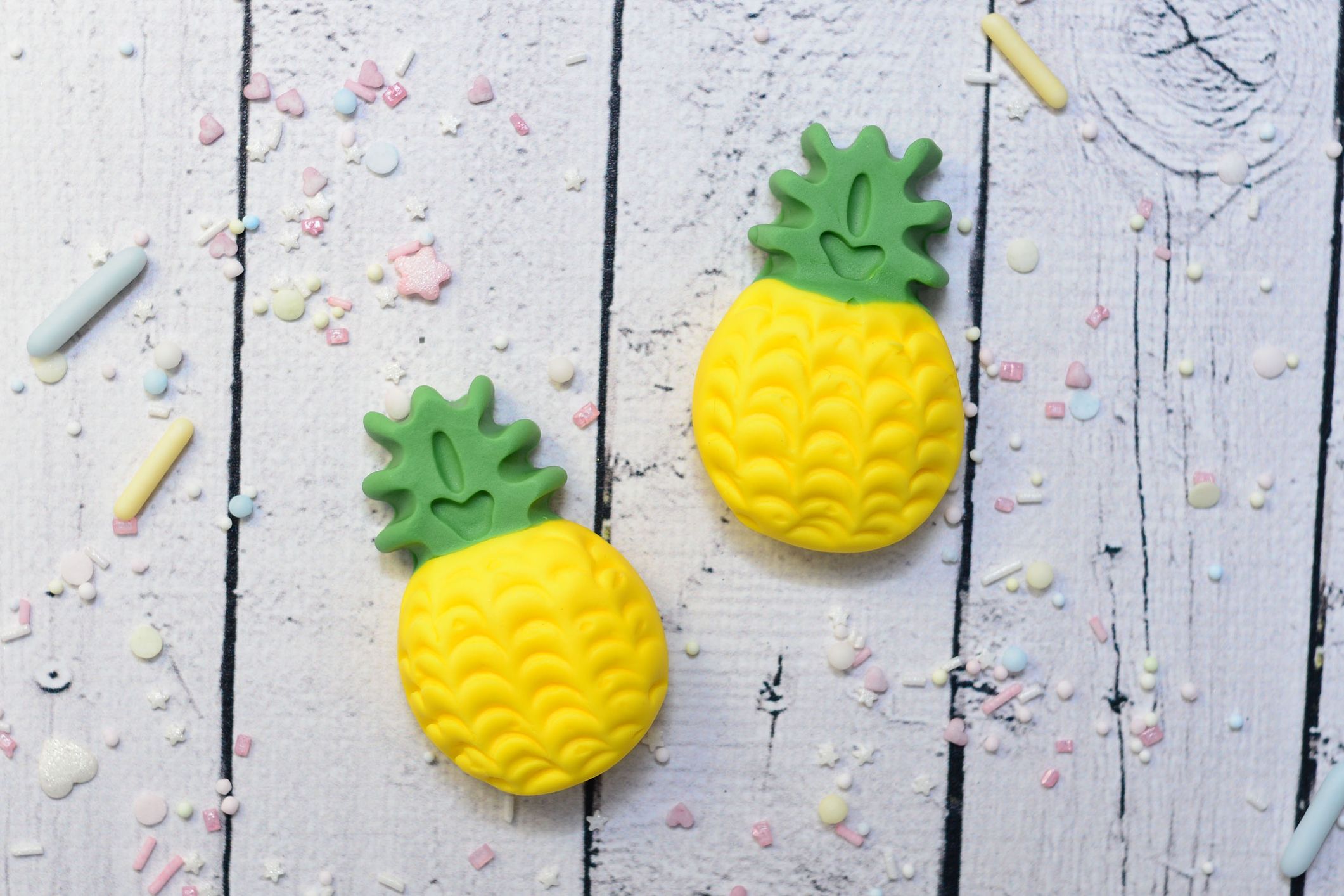 Dodaj swoim wypiekom tropikalnego charakteru. Ręcznie wykonane dekoracje z masy cukrowej w kształcie ananasów to idealny dodatek do dekoracji tortów, babeczek i deserów.
