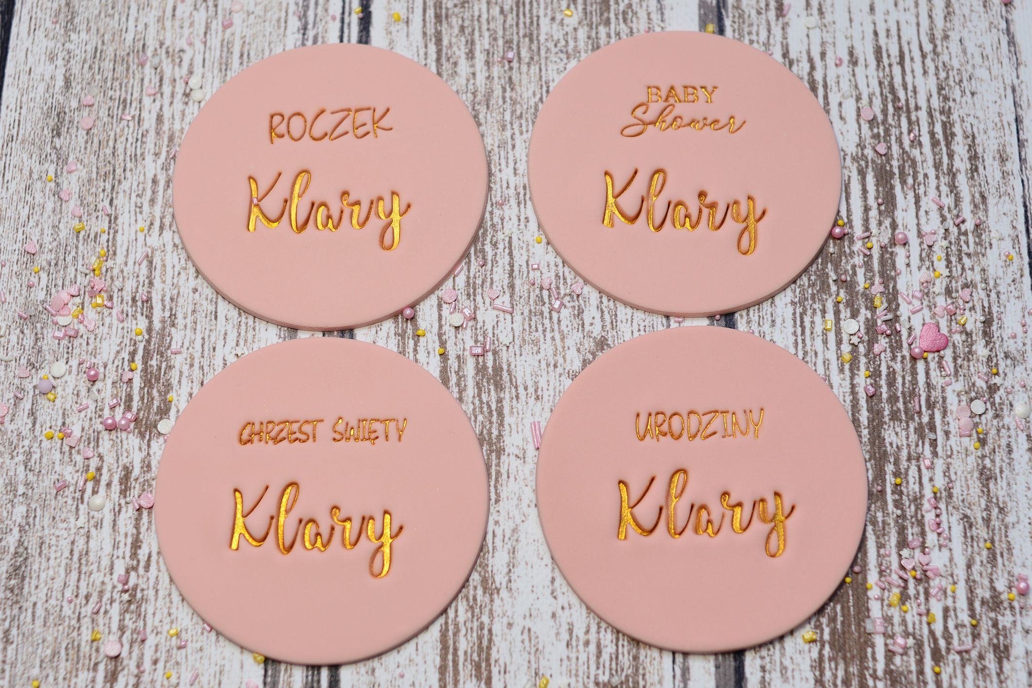 🔸 Złoty napis – precyzyjnie pomalowany jadalnym barwnikiem w kolorze złota, dodaje szyku i blasku.