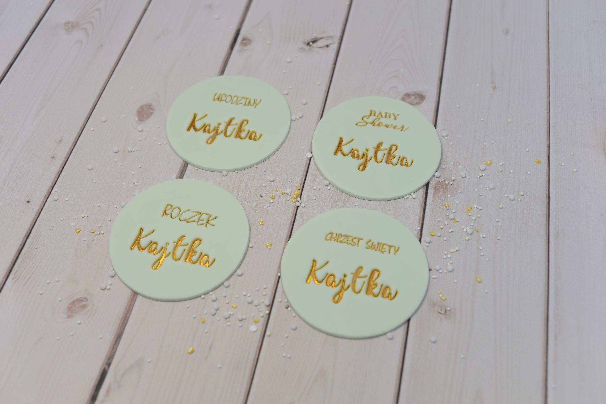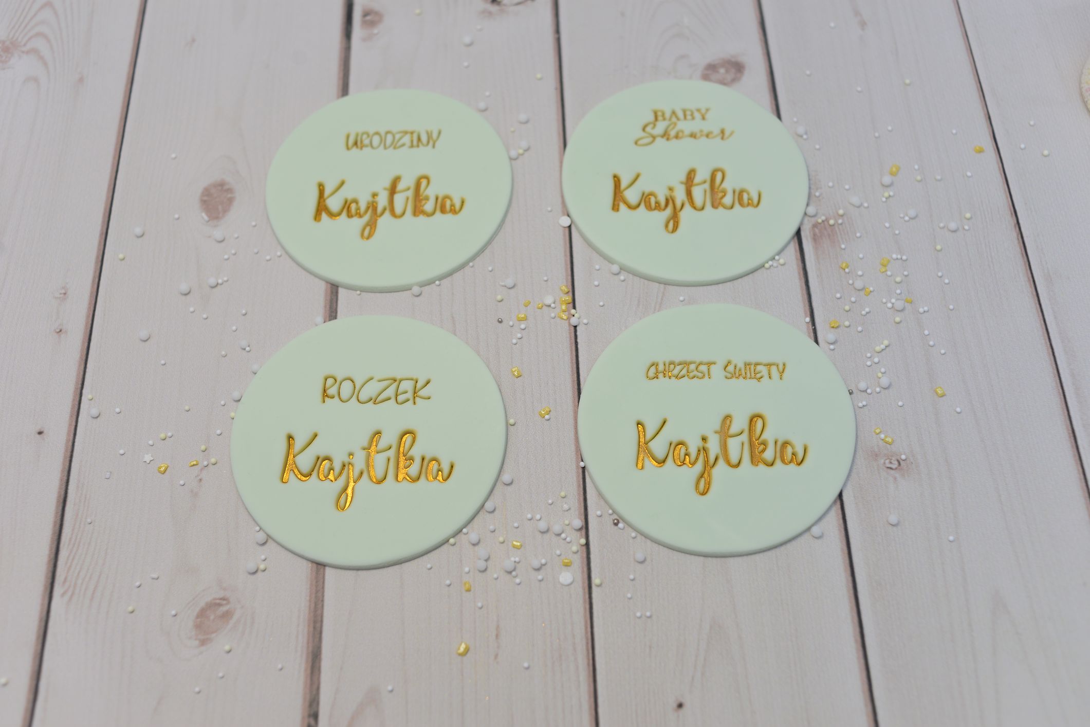 🔸 Złoty napis – precyzyjnie pomalowany jadalnym barwnikiem w kolorze złota, dodaje szyku i blasku.