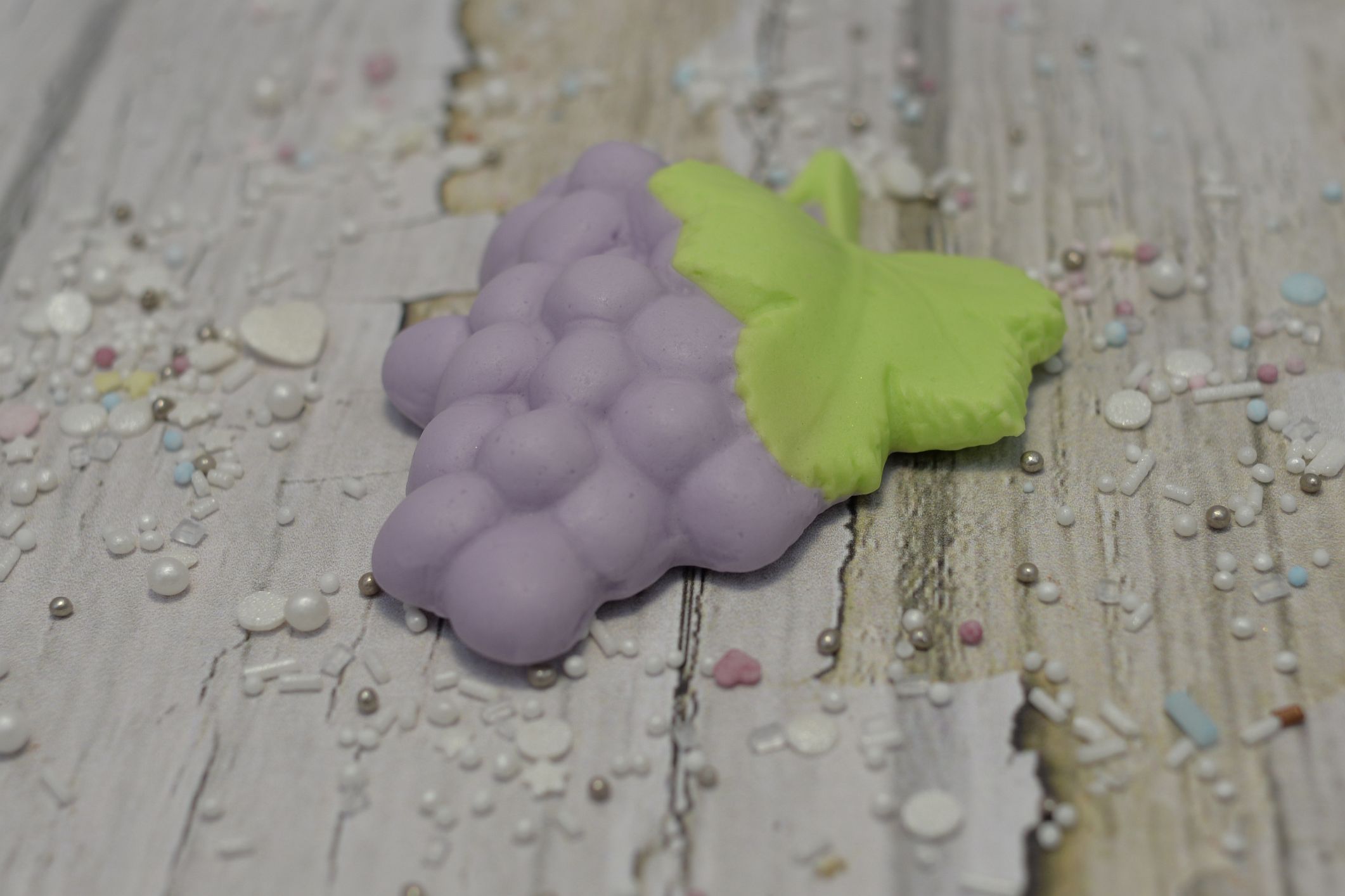 Dekoracja w kształcie kiści winogron z liściem to subtelny i symboliczny element ozdoby tortu komunijnego. Motyw winogron nawiązuje do symboliki eucharystycznej, dlatego doskonale pasuje do tortów przygotowywanych na Pierwszą Komunię Świętą.