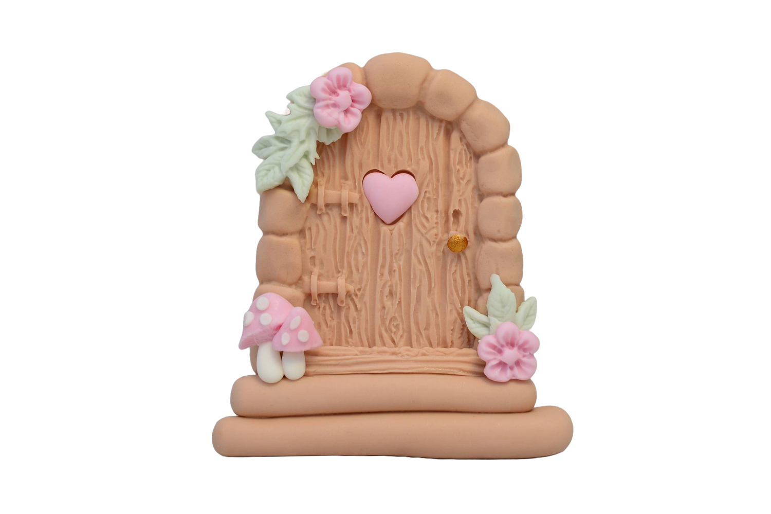 Te słodkie, beżowe wrota z kamienną ramą, różowym serduszkiem i kwiatuszkami rozbudzą wyobraźnię każdego małego (i dużego) marzyciela.