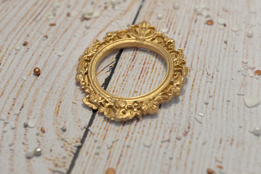 Owalna złota ramka inspirowana stylem retro to wyjątkowy akcent, który podkreśli charakter dekoracji tortu. Jej finezyjne zdobienia i szlachetny odcień złota sprawiają, że idealnie pasuje do tortów w stylu vintage, rustykalnym czy królewskim.