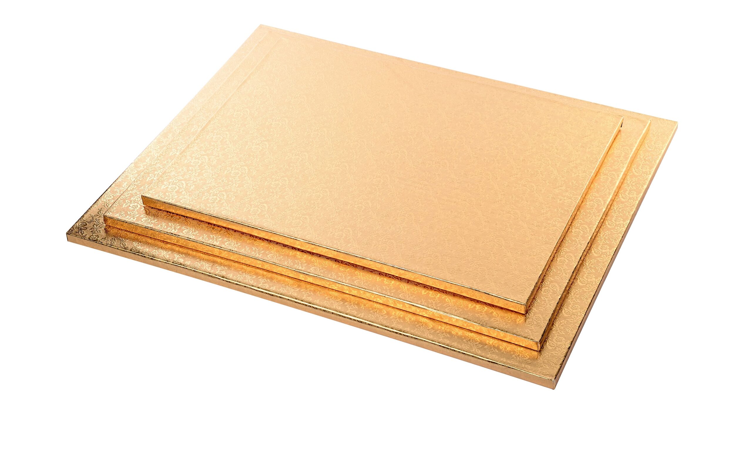 Złoty, prostokątny podkład pod tort MODECOR o wymiarach 35cm x 45cm, grubość 12mm
